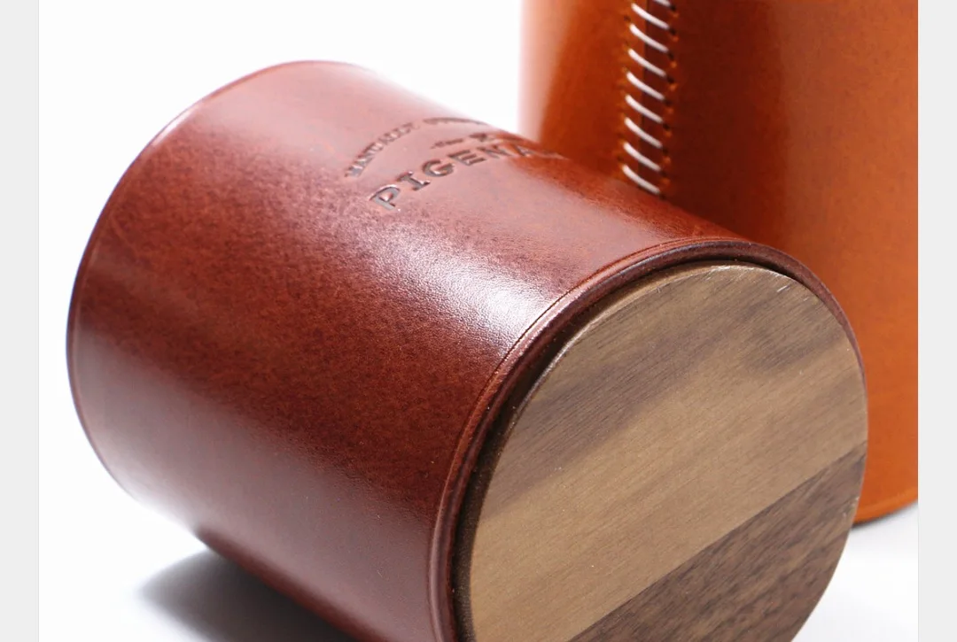 정품 가죽 호두 펜 홀더 - 빈티지 스타일 문구 정리함