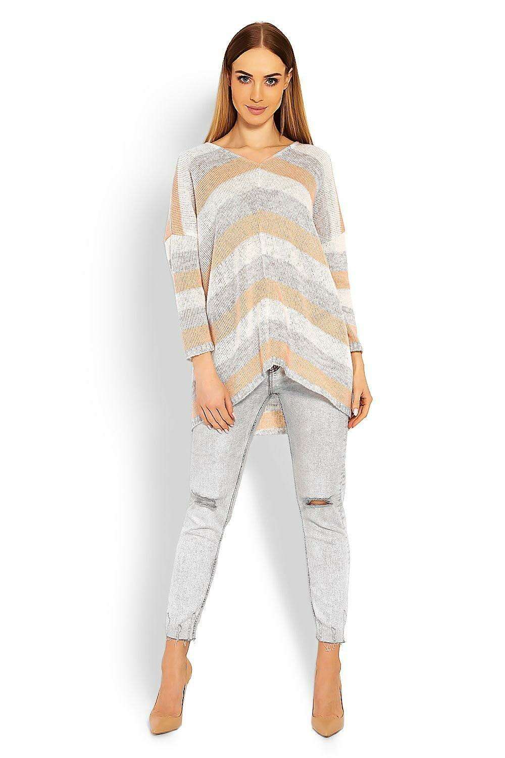 Elevate your outfit effortlessly with the Peekaboo Striped Comfortable Sweater, your go-to piece for a fashionable and cozy ensemble. Perfect for layering or wearing on its own, this sweater is destined to become a staple in your wardrobe.