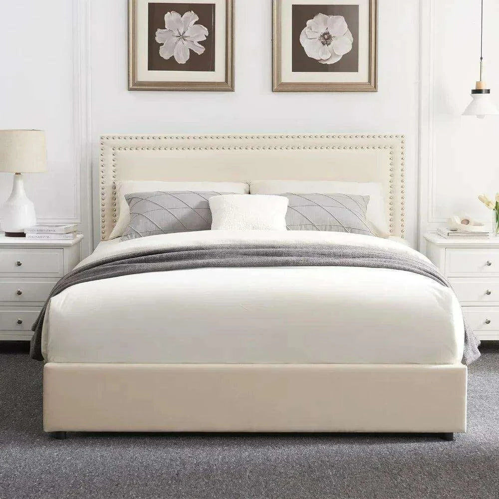 Elegant Velvet Storage Bed with Adjustable Rivet Headboard