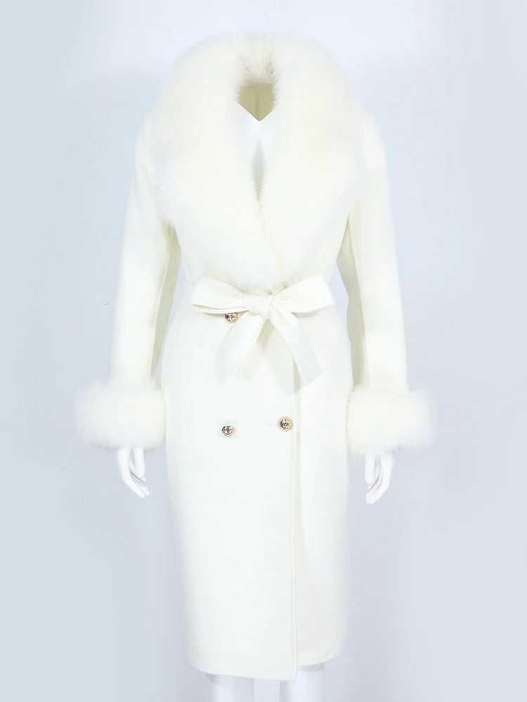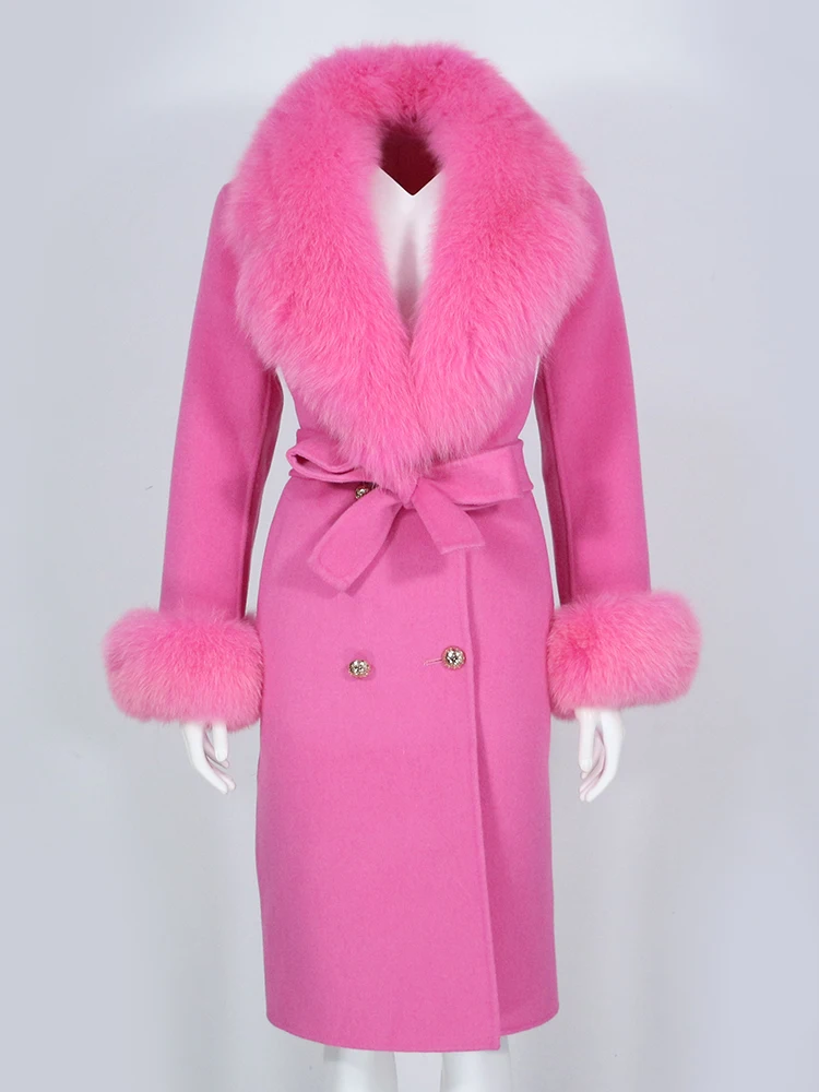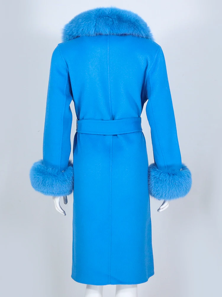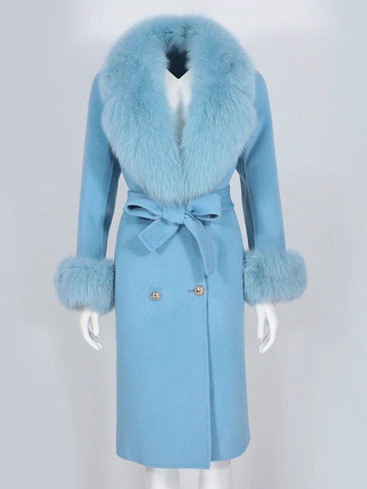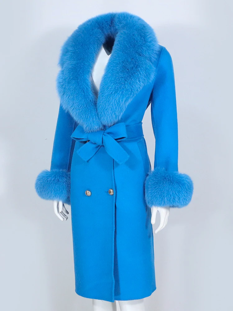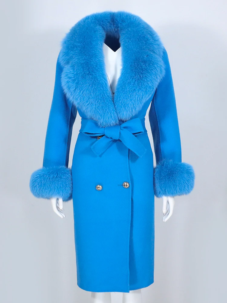 OFTBUY 2022 리얼 빅 모피 코트 겨울 자켓 여성 천연 여우 모피 칼라 캐시미어 울 혼합 긴 겉옷 숙녀 streetwear