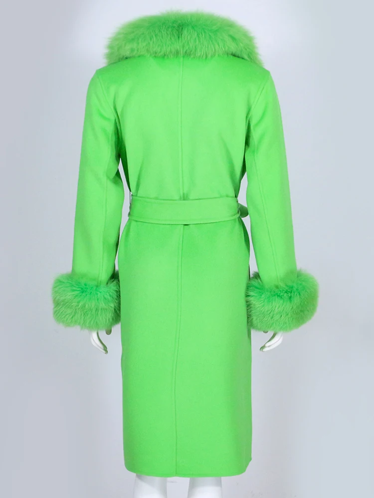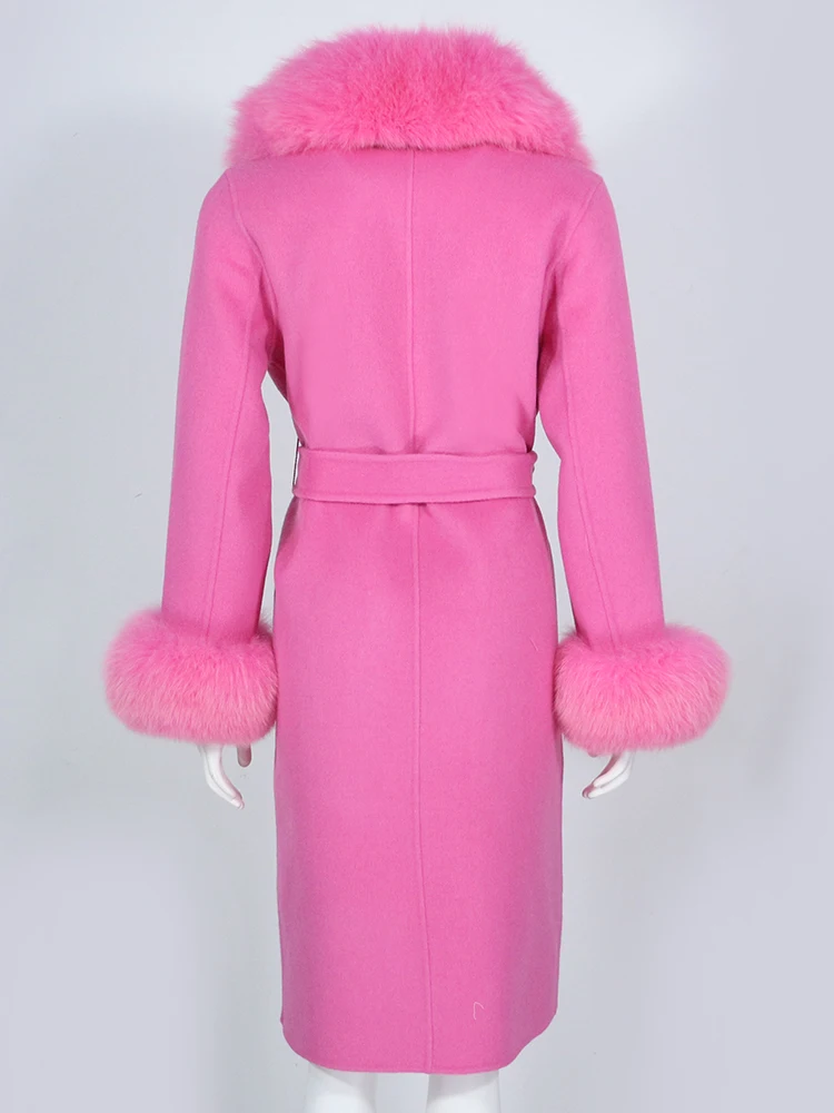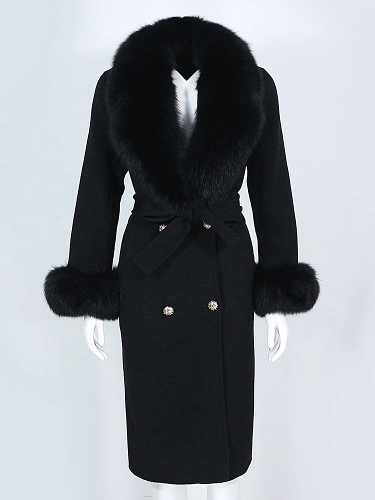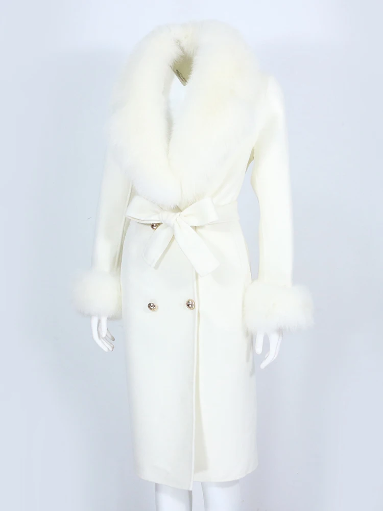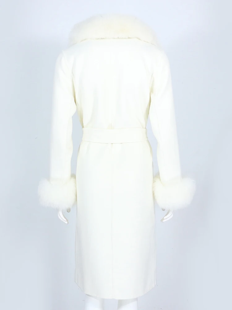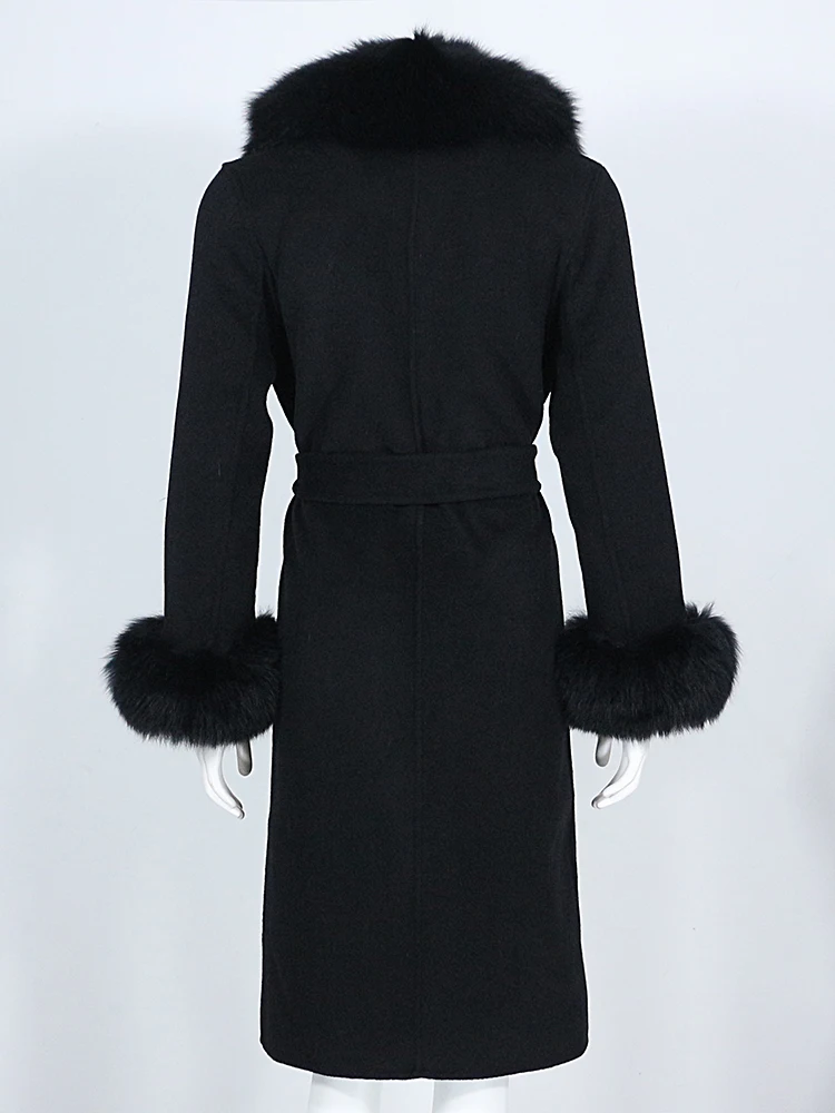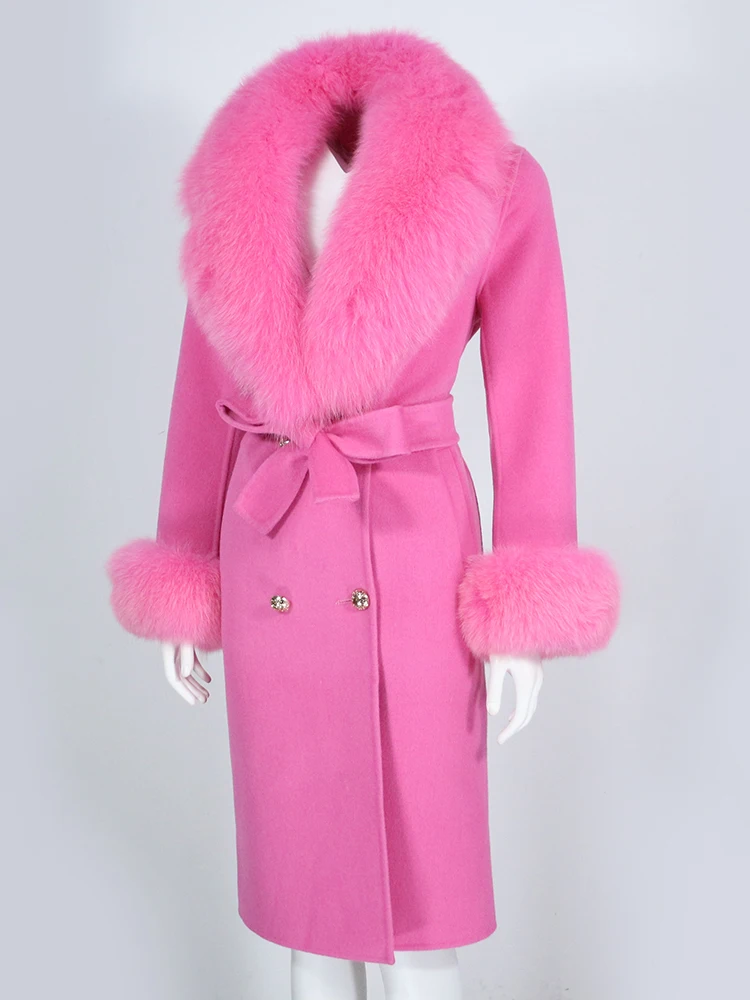 OFTBUY 2022 리얼 빅 모피 코트 겨울 자켓 여성 천연 여우 모피 칼라 캐시미어 울 혼합 긴 겉옷 숙녀 streetwear