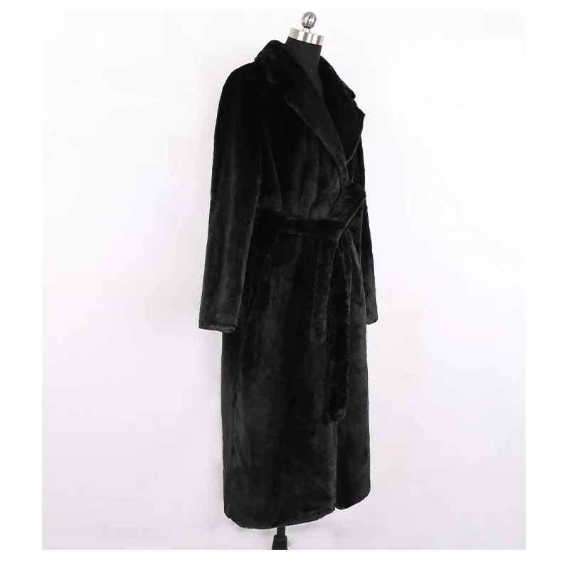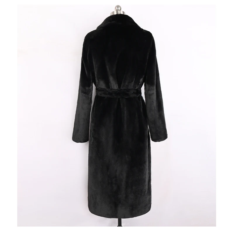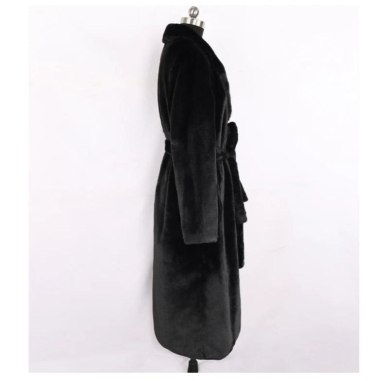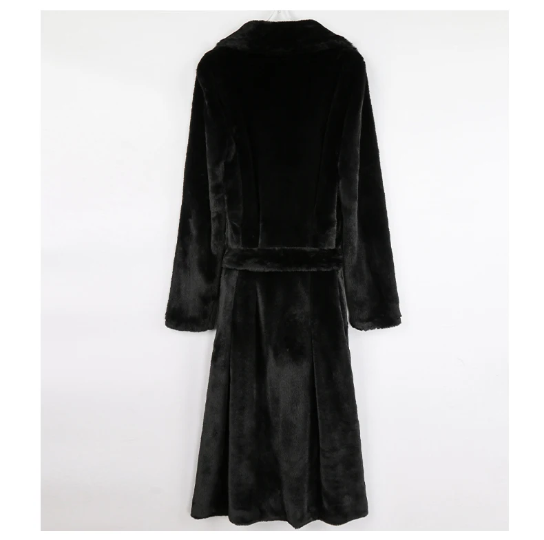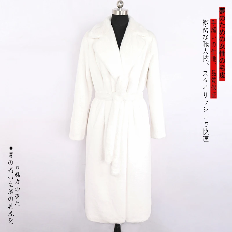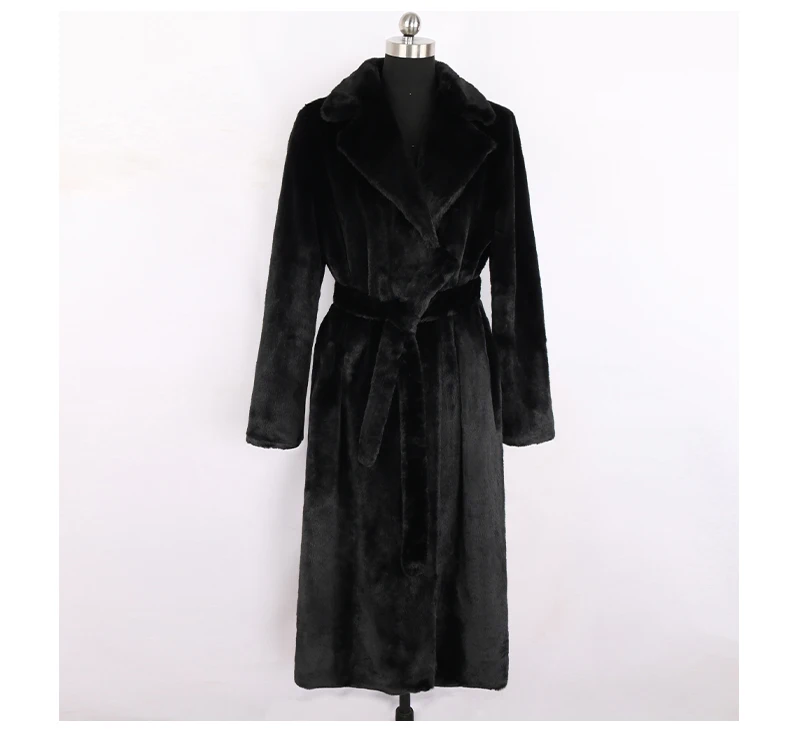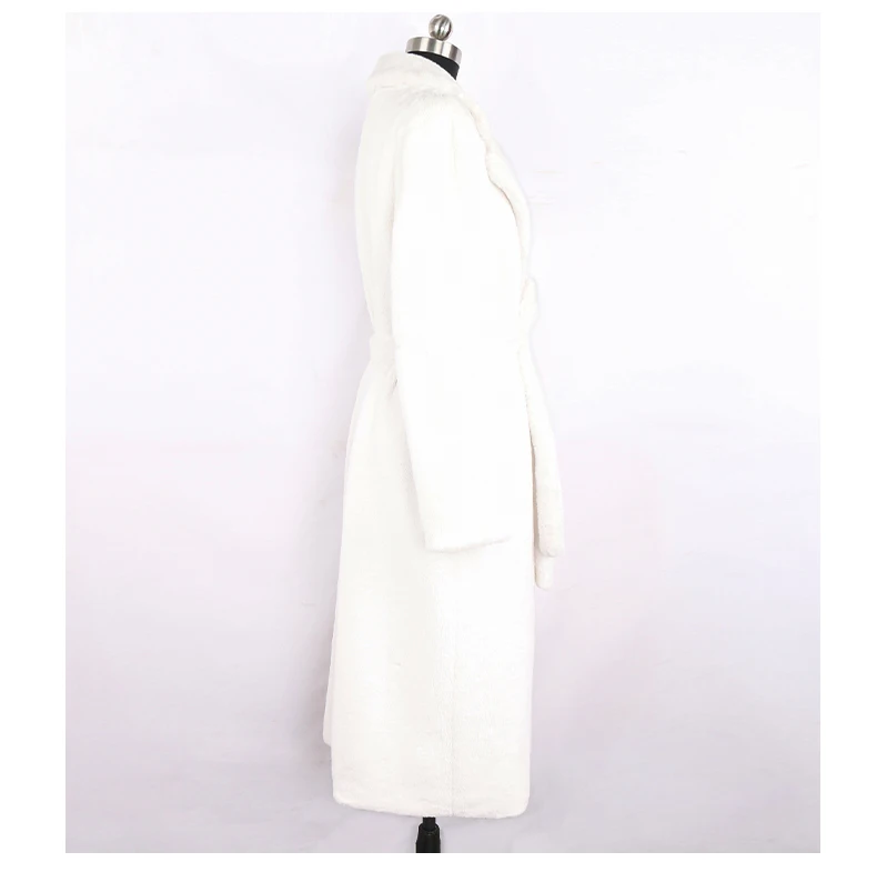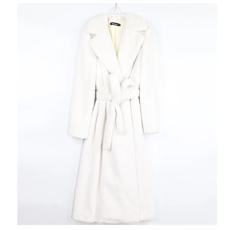 Nerazzurri 겨울 긴 흰색 검정색 따뜻한 솜털 가짜 모피 코트 여성 긴 소매 벨트 옷깃 세련된 한국 패션 버튼없이