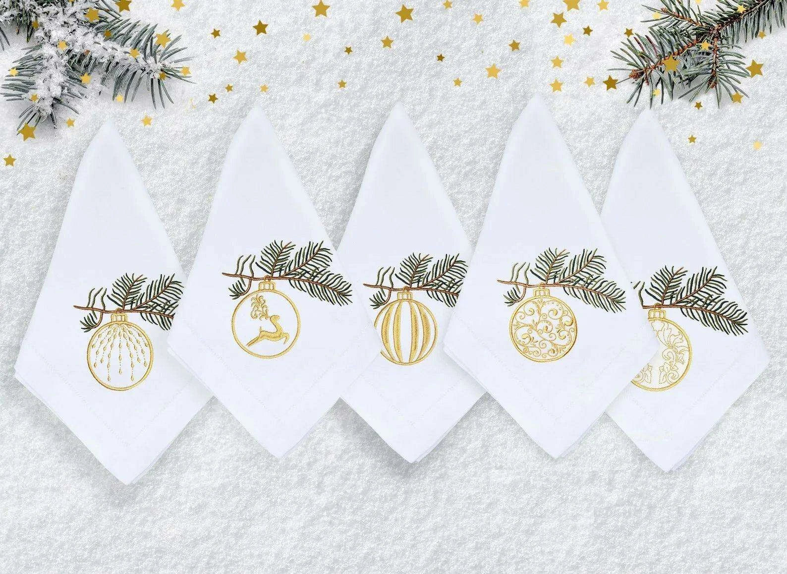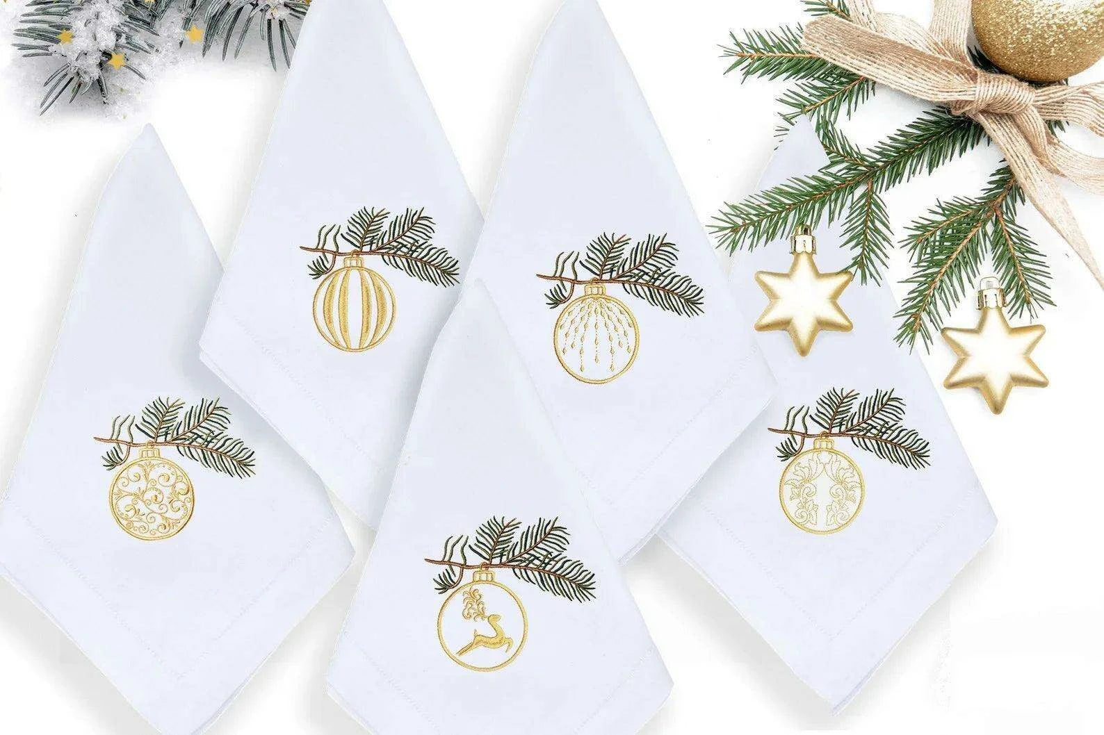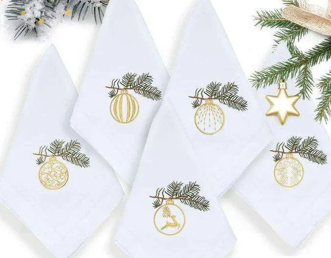 크리스마스 냅킨, 플레이스매트, 헴스티치, 면+린넨, 테이블 장식, 자수 크리스마스 공, 솔방울