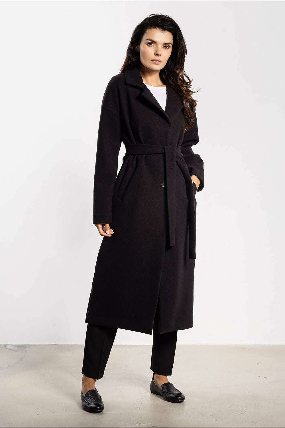Timeless Women's Minimalist Midi Coat With Belt And Lapels is an elegant addition to any autumn–winter wardrobe. Its simple, minimalist cut creates a timeless silhouette, while classic lapels enhance a refined look. The included belt lets you cinch the waist for a polished, structured finish or wear the coat loose for a more casual vibe. Practical side pockets add everyday functionality without compromising the clean lines. Crafted from a durable polyester 87% and rayon 13% blend, this coat offers comfort, freedom of movement, and lasting style.