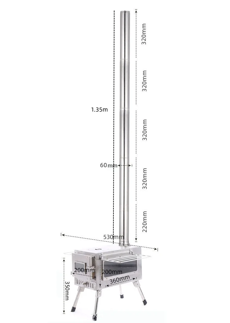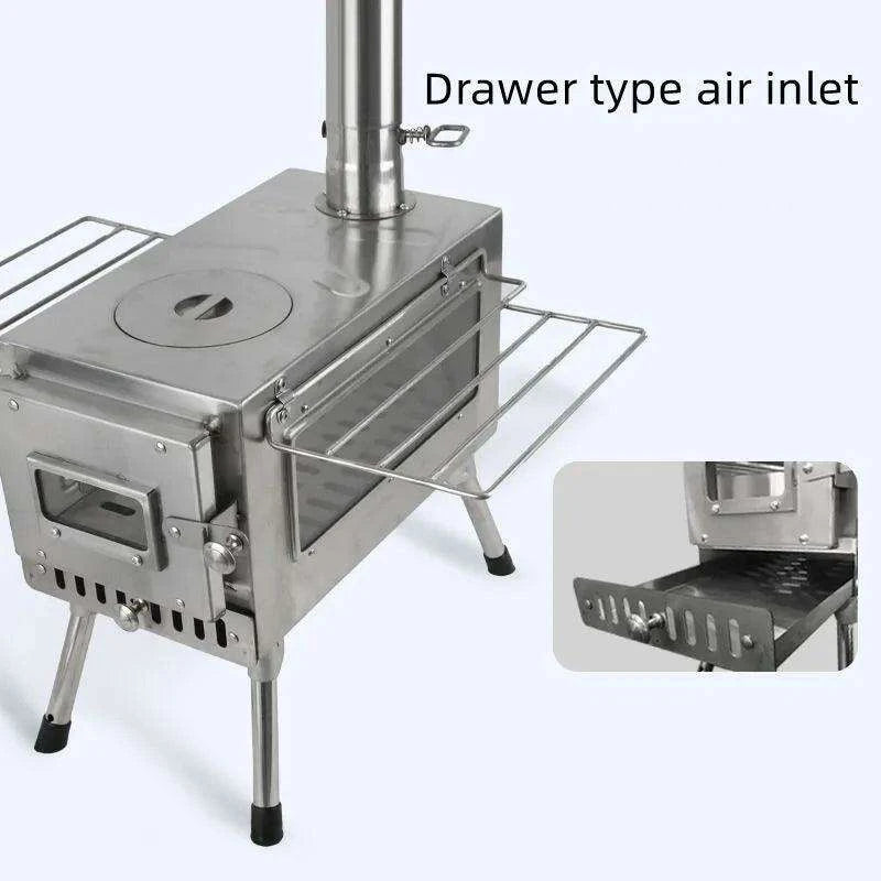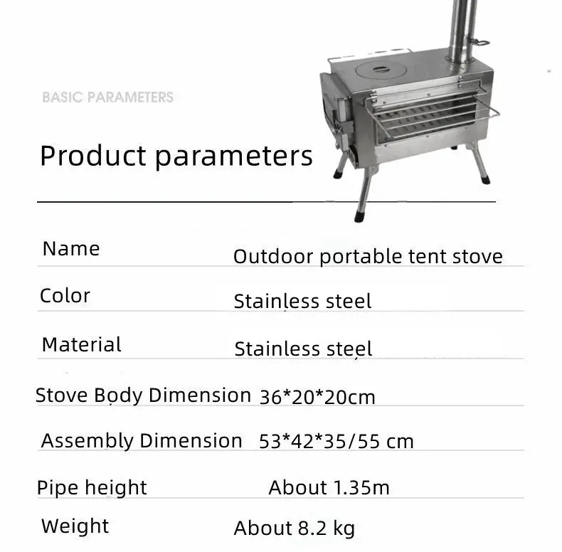 Whether you're heating your tent or cooking a gourmet meal, the Portable Stainless Steel Wood Burner seamlessly blends functionality with portability. Ensure your outdoor adventures are both enjoyable and comfortable with this essential wood stove.