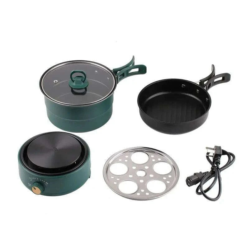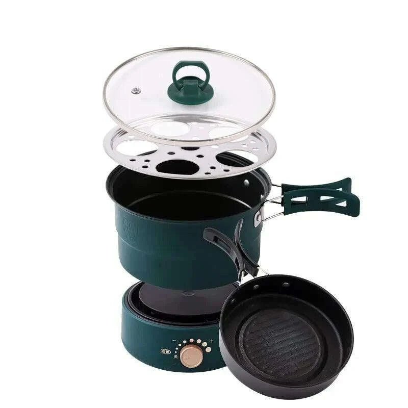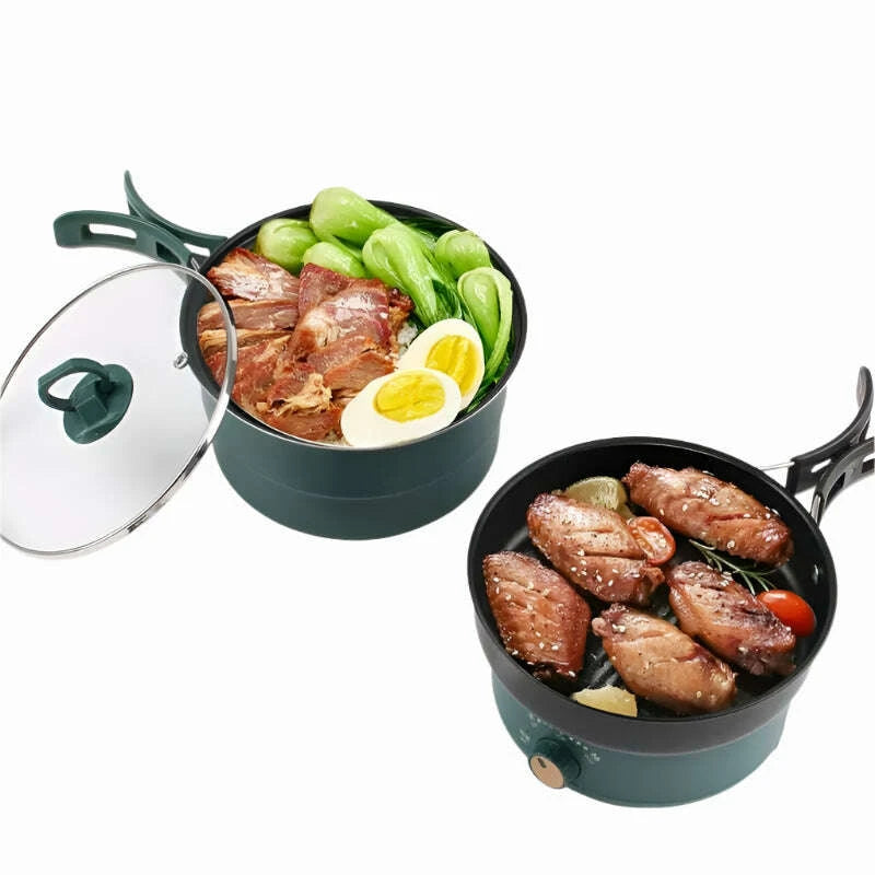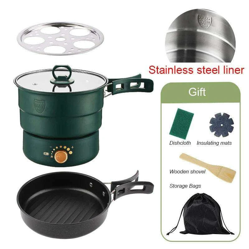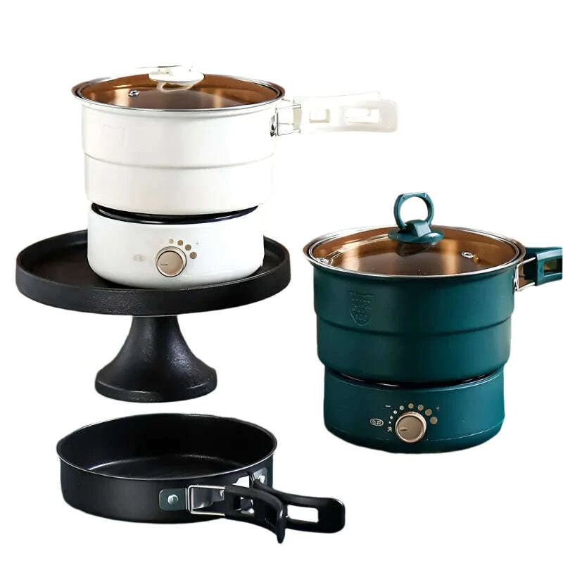 Compact Travel Multicooker: Foldable 110V/220V Cooking System for Frying, Steaming, and More