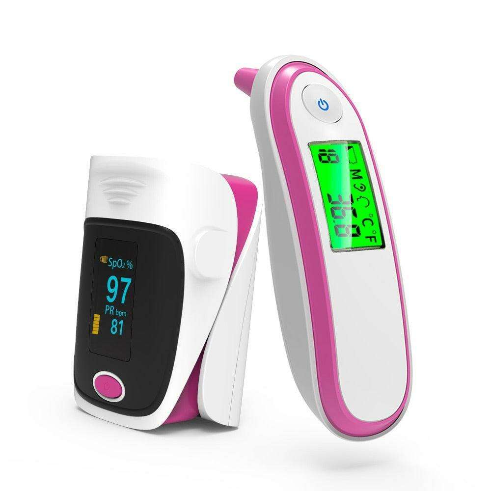 손가락 끝 맥박 Spo2 PR 산소 농도계 및 적외선 온도계 건강 관리 번들