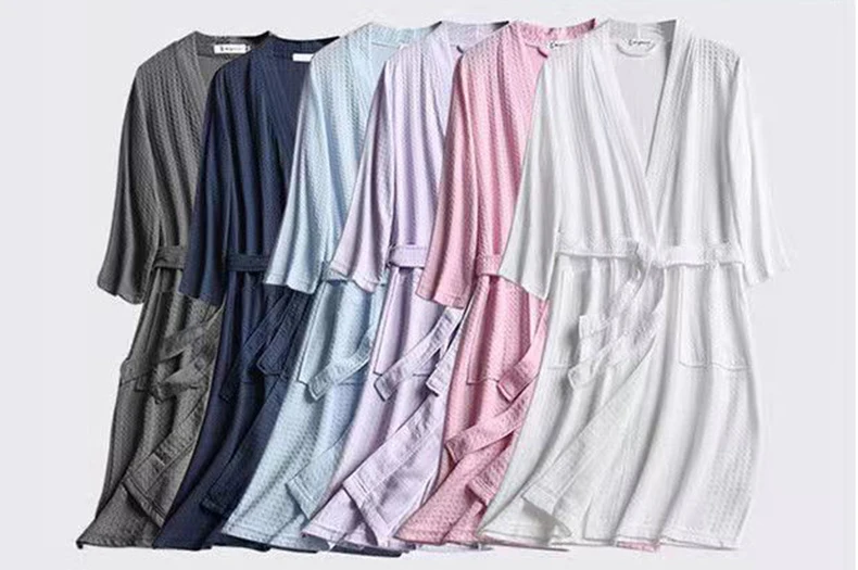 제품 취급: 프리미엄 면 잠옷과 목욕 가운의 깨끗한 품질을 유지하려면 찬물과 중성 세제를 사용하여 부드럽게 기계 세탁하는 것이 좋습니다. 표백제나 가혹한 화학 물질을 사용하지 마십시오. 약한 온도에서 회전식 건조하고 필요한 경우 따뜻한 다리미를 사용하여 바삭바삭하고 고급스러운 마무리를 연출하세요.