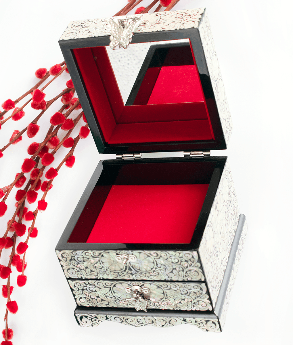 - 우리의 래커 보석함은 중국 전통 예술의 증거이며 귀하의 보석을 위한 우아하고 체계적인 솔루션을 제공합니다. 그 절묘한 디자인은 귀하의 주얼리 컬렉션을 보호하는 동시에 모든 방의 장식을 향상시켜 줄 것입니다.