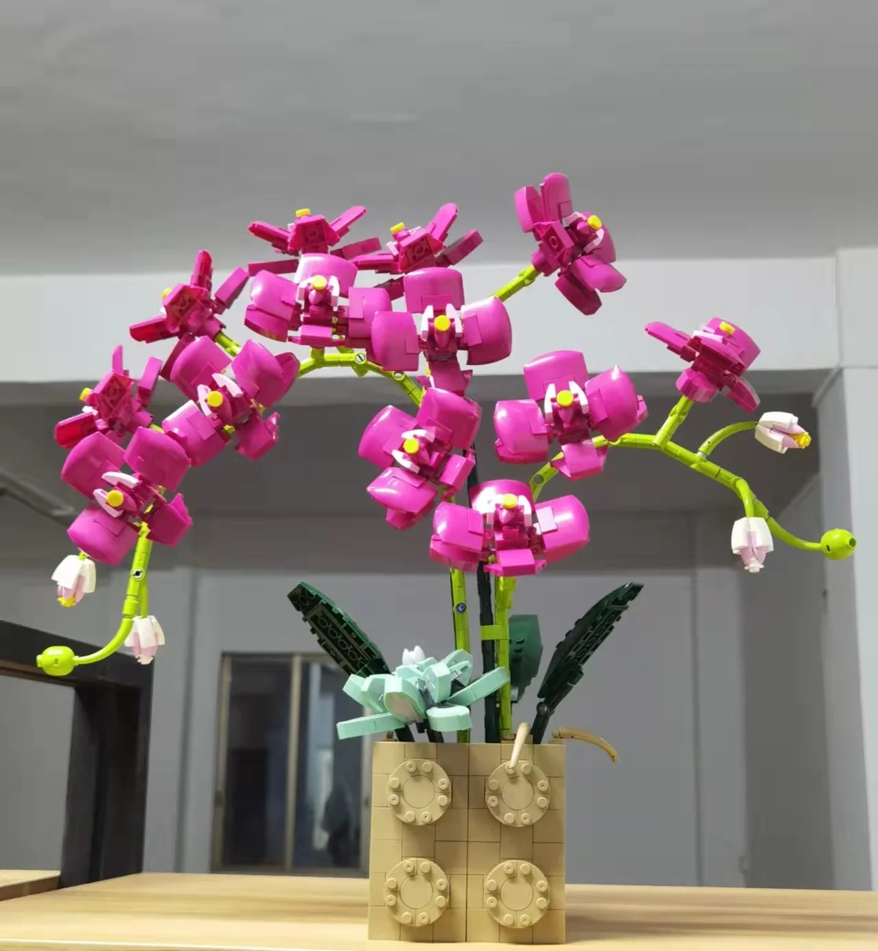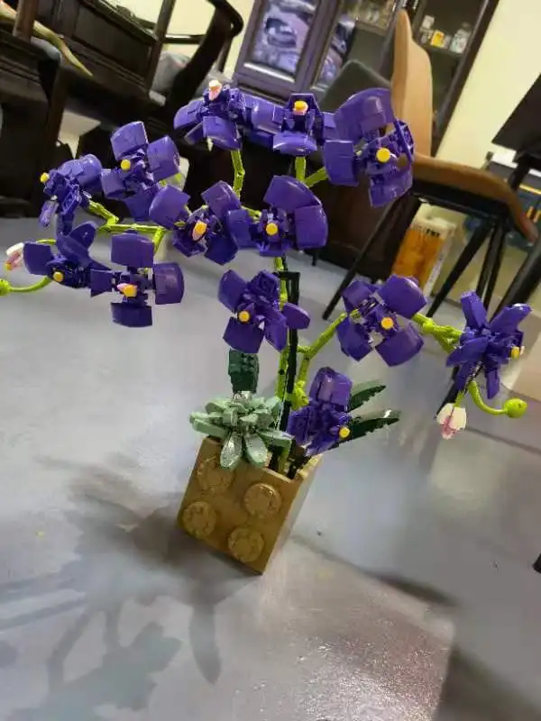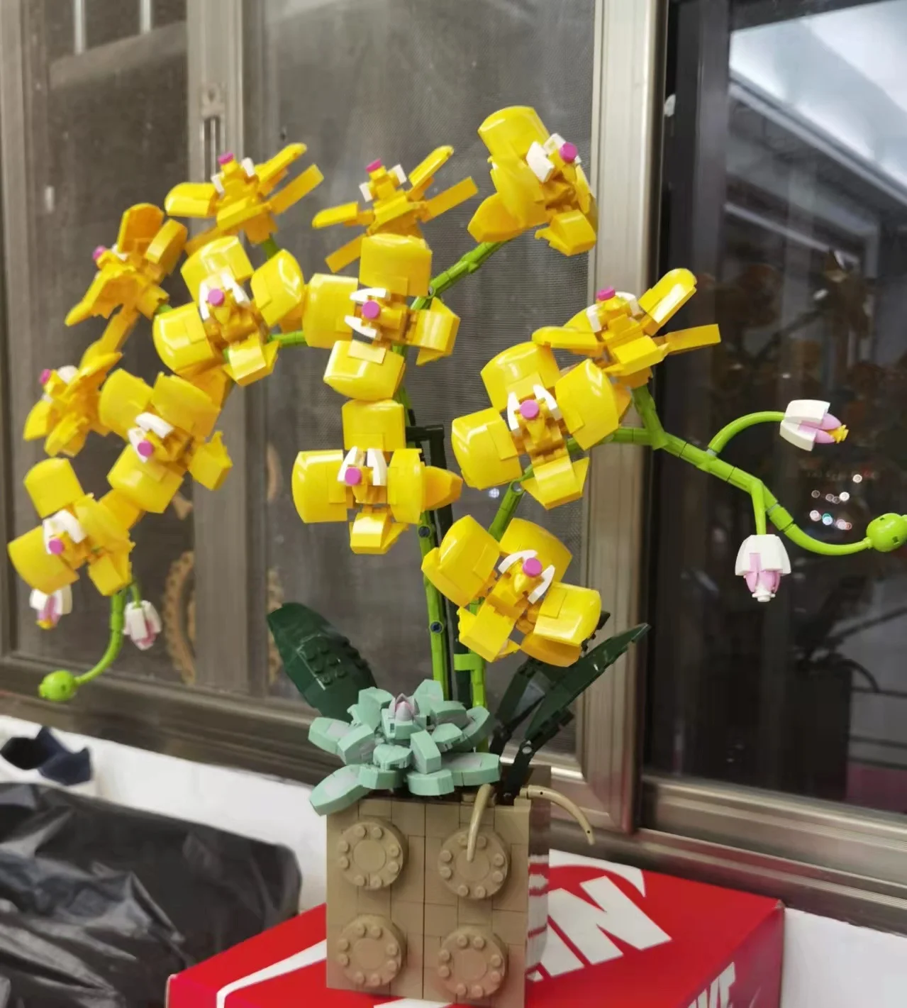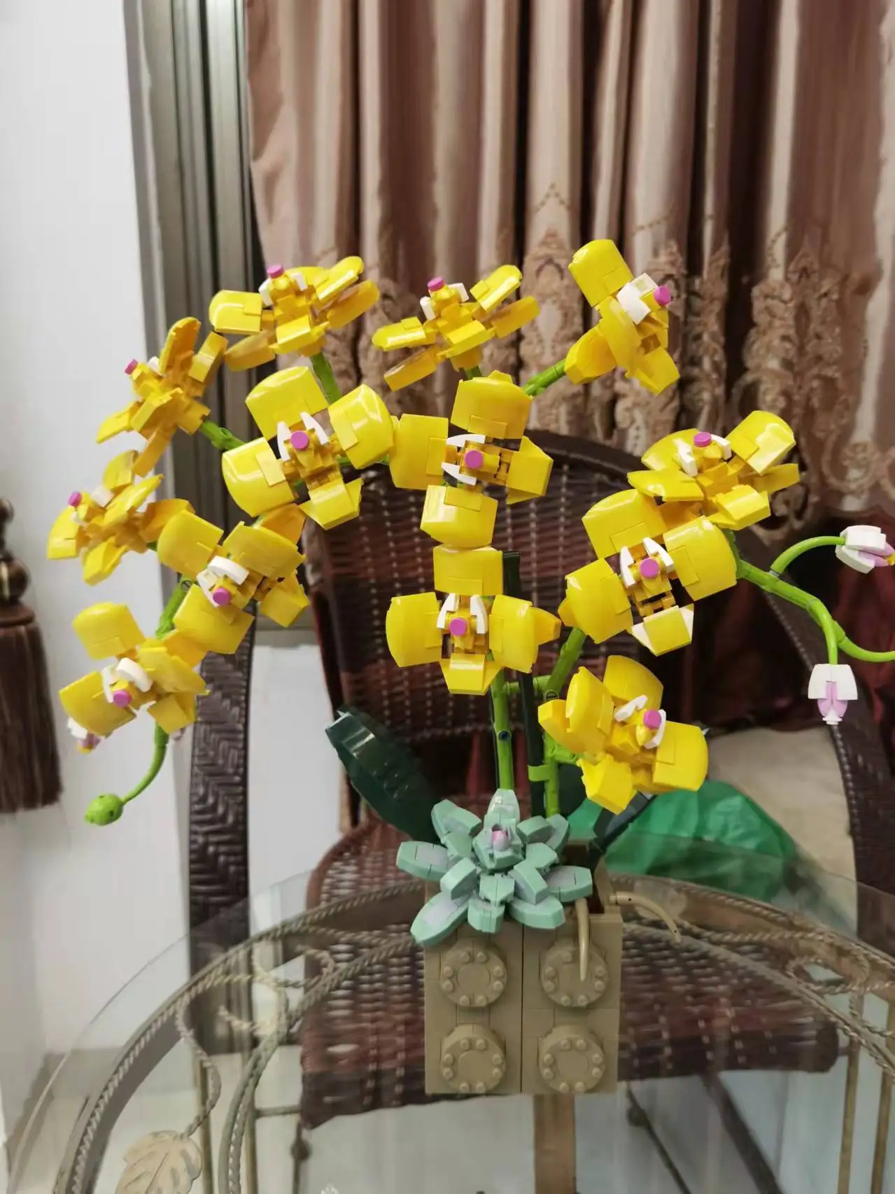 노란색 꽃 빌딩 블록 난초 시리즈 분재 소녀 빌드 장난감 꽃 소녀를위한 성인 꽃꽂이 조립 장난감