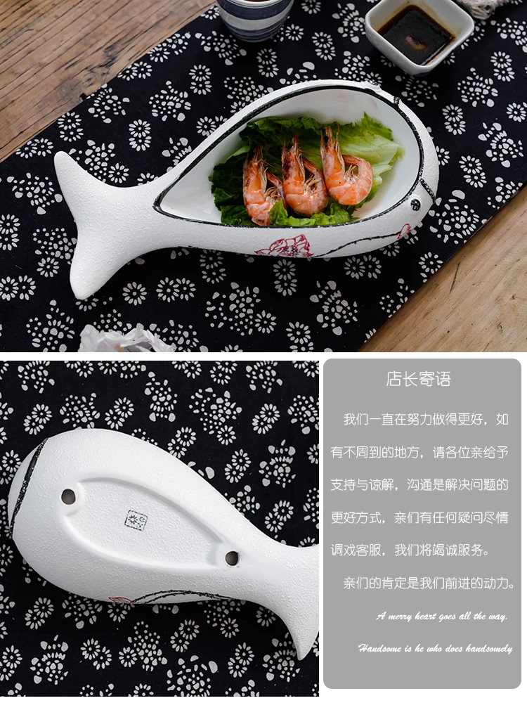 크리 에이 티브 손으로 그린 도자기 요리 특별 호텔 레스토랑 식기 모양의 홈 디너 플레이트 과일 수프 밥 접시 생선 모양