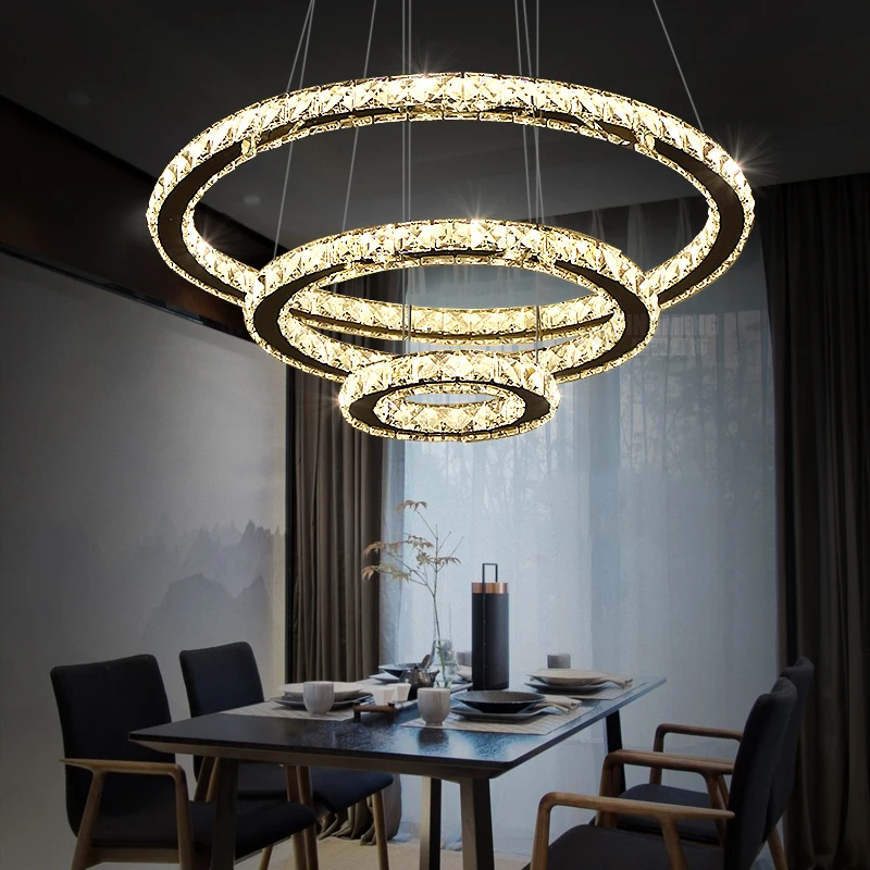 현대 LED 광택 샹들리에 레스토랑 바 베란다 라이트 창 의류 매장 다이닝 룸 링 크리스탈 장식 조명 램프