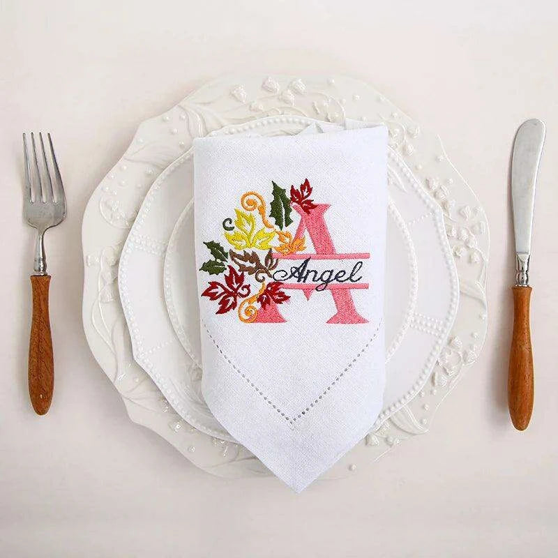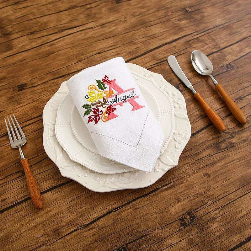 우아한 맞춤형 모노그램 자수 디너 냅킨, 맞춤형 터치, 세련된 디자인, 완벽한 선물, 화이트 리넨 냅킨
