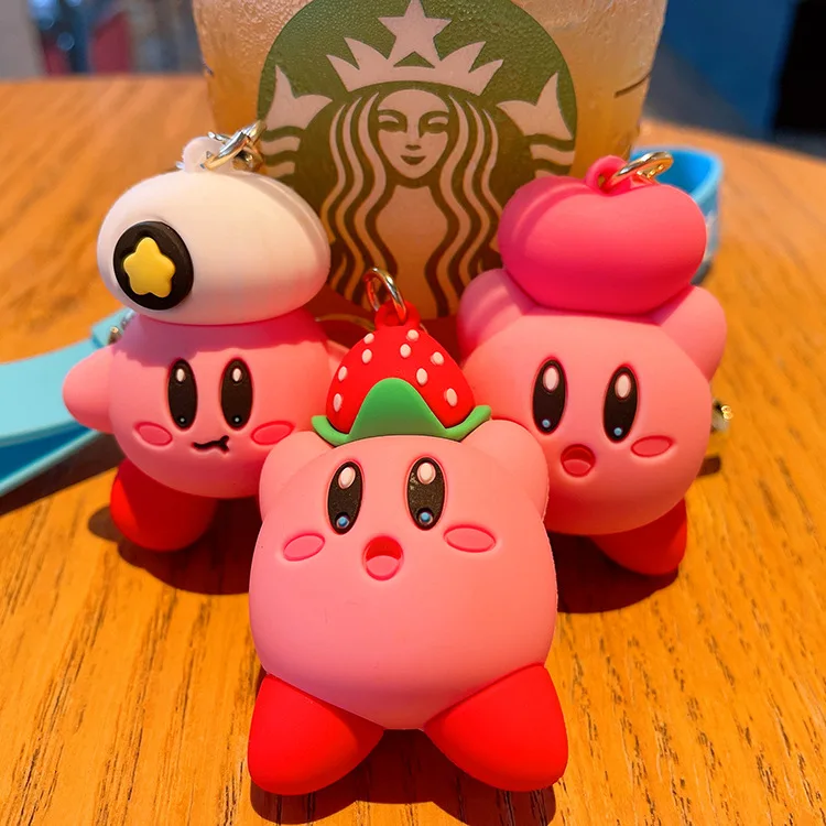 어린이와 여성용 자동차 액세서리를 위한 스위트 핑크 커비 애니메이션 펜던트 키체인