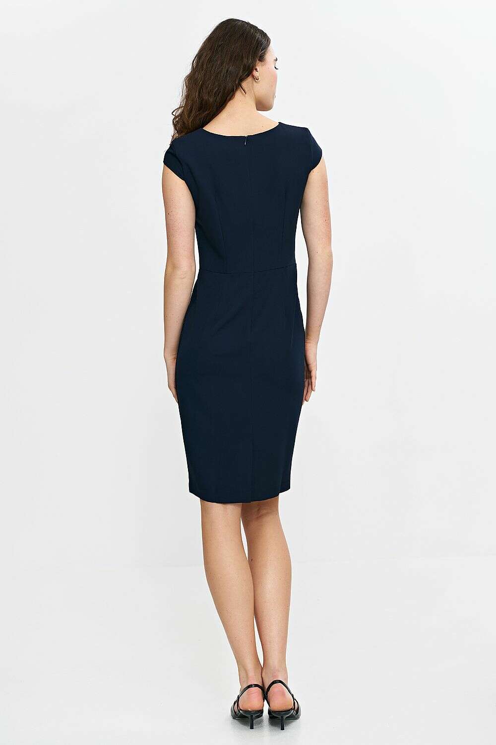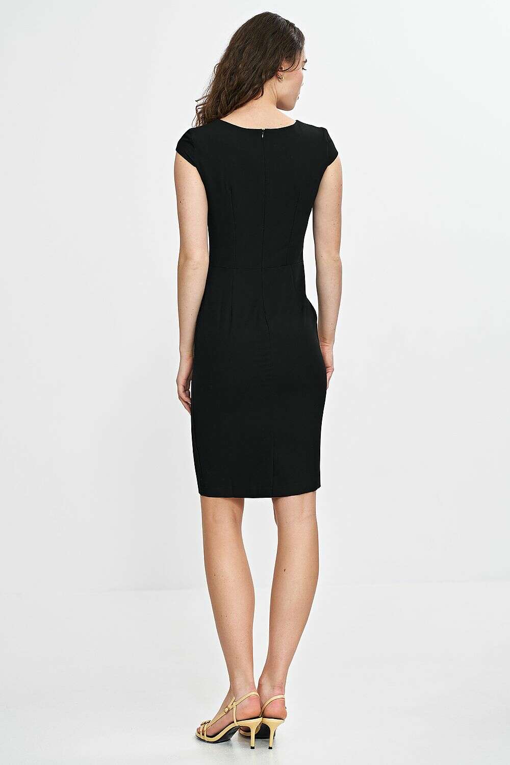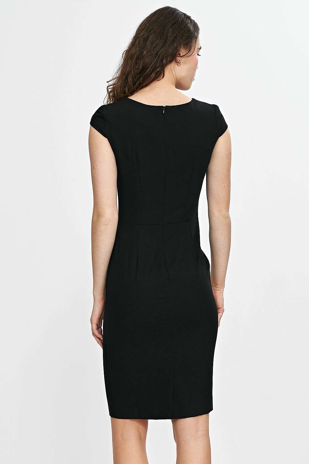 Experience refined elegance with Daydress Model 210069. This elegantly fitted dress features a classic cut that flatters a range of silhouettes. The round neckline is enhanced by a subtle slit, adding a touch of sophistication, while the short cap sleeves softly cover the shoulders to emphasize a feminine silhouette. The pencil skirt hugs the lines of the body, and the knee-length cut delivers timeless elegance.