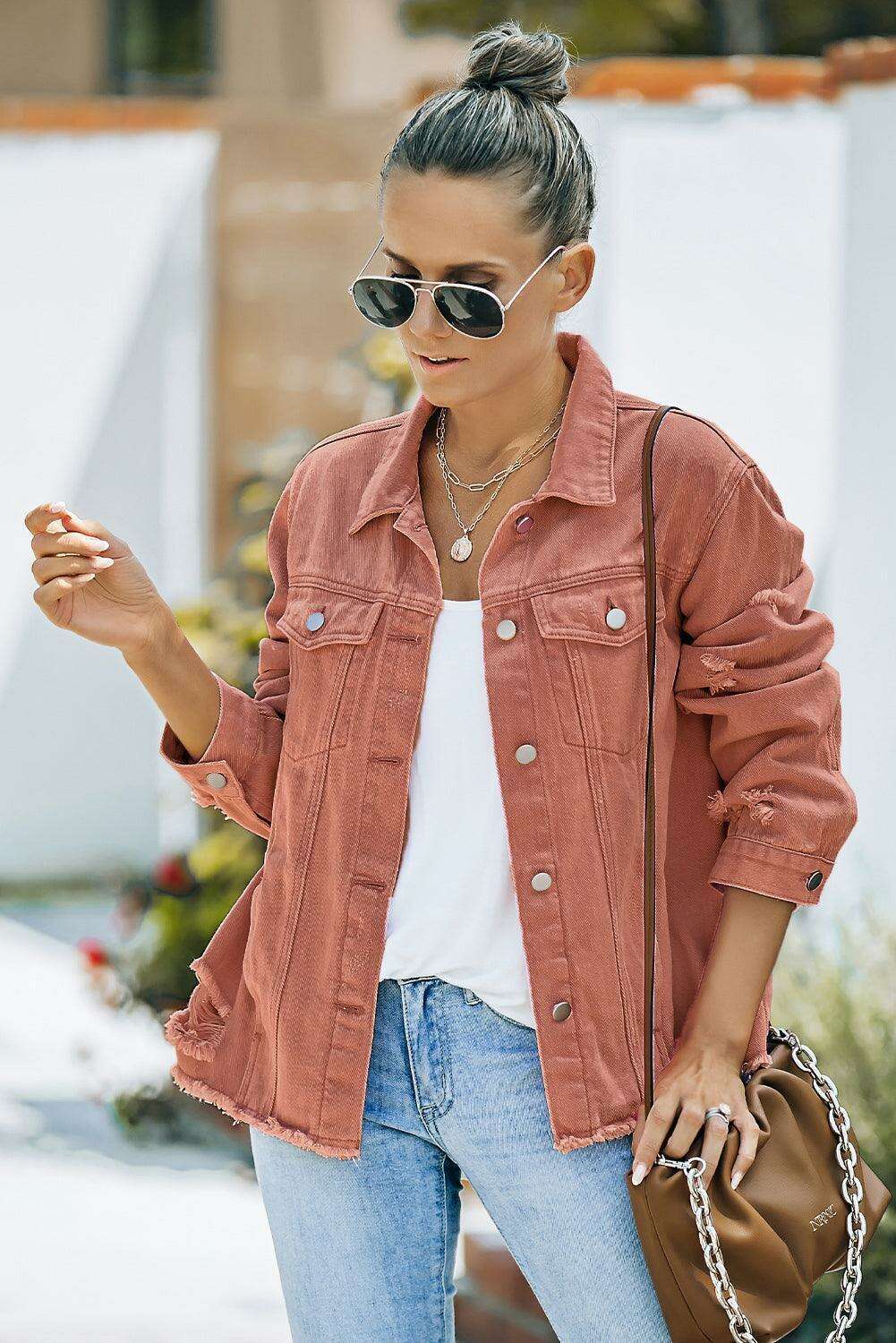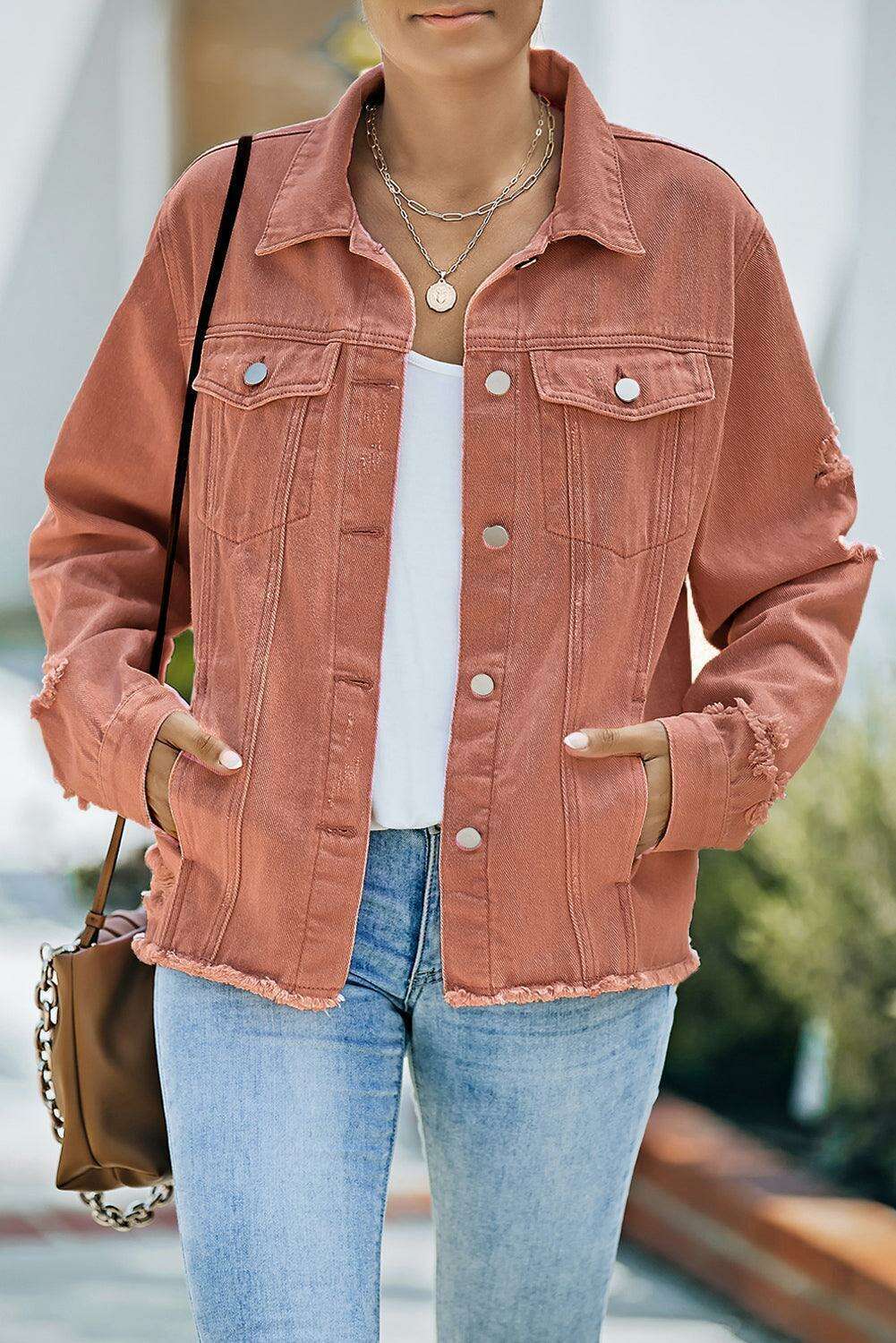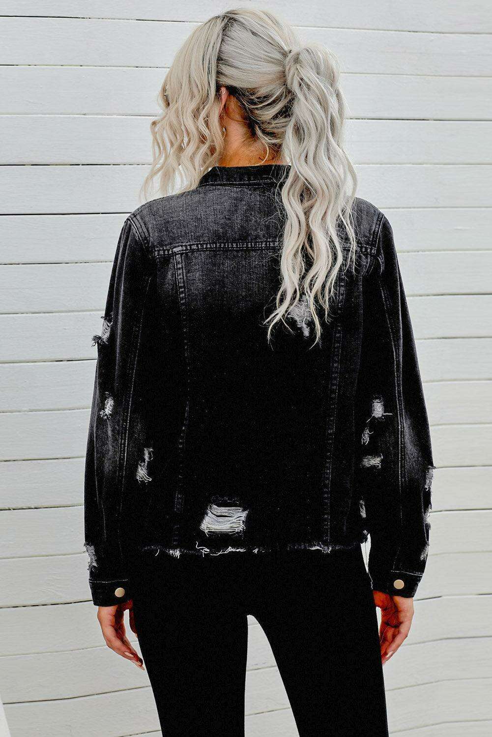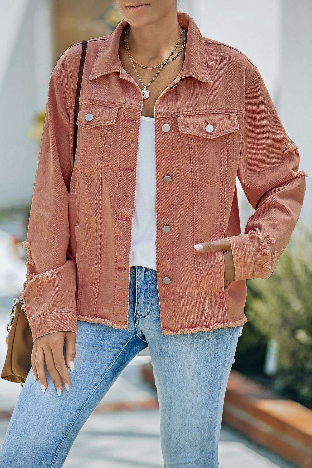디스트레스드 로우 헴 데님 재킷