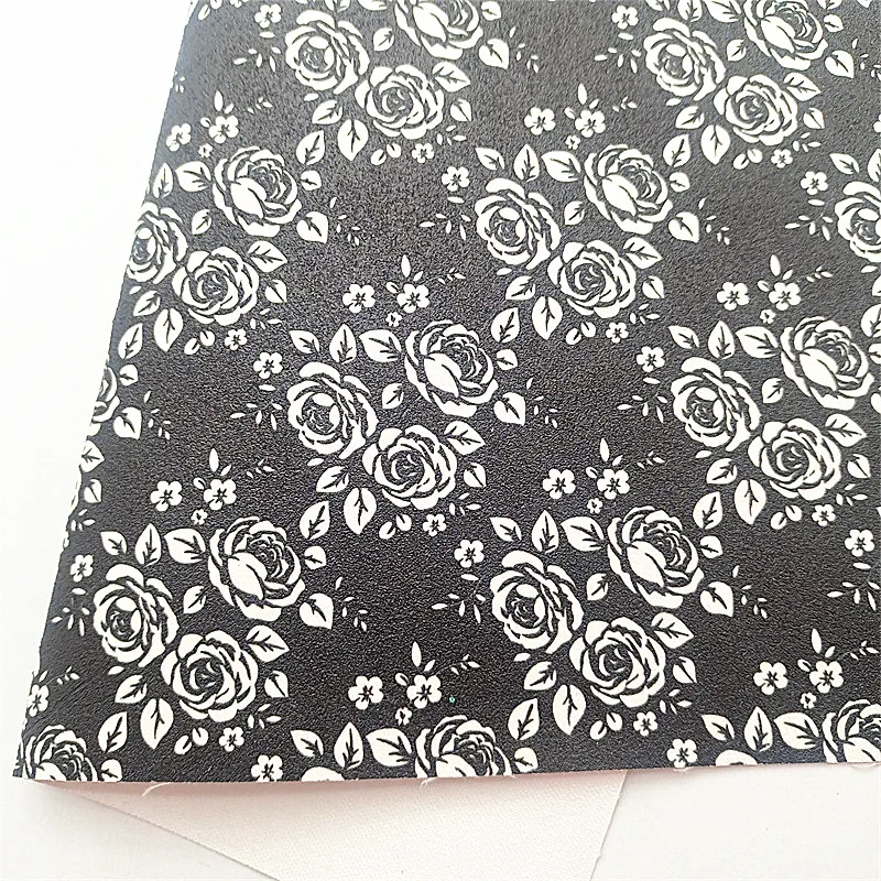 하트 반짝이 가죽, 장미 인쇄 합성 피혁, 활을위한 꽃 양각 인조 가죽 시트 DIY 21x29CM KM1171