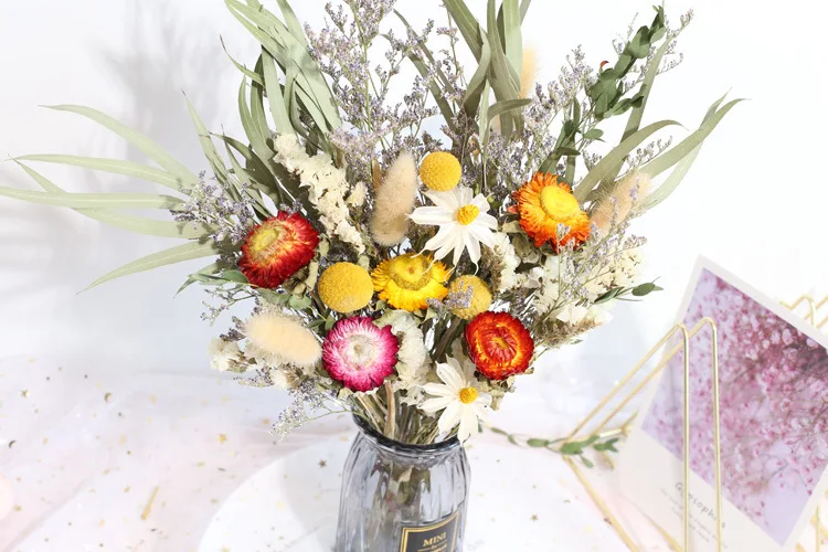 고품질 드라이 플라워 부케로 시간이 흘러도 변치 않는 자연의 아름다움을 집에서 경험해 보세요. 손으로 딴 실제 꽃은 선명한 색상을 유지하고 1년 이상 지속되도록 세심하게 염색하고 건조합니다. 조화와는 달리, 결코 그 매력을 잃지 않으므로 장식 매니아에게 꼭 필요한 아이템입니다. 집, 정원 또는 자연의 아름다움을 불어넣고 싶은 장소 등 생활 공간에 예술적인 느낌을 더해보세요. 꽃 재배 및 판매 분야에서 수십 년의 경험을 보유한 회사인 Yunnan ZHUQUE Co., Ltd.를 신뢰하여 귀하의 장식을 새로운 차원으로 끌어올릴 최고 품질의 말린 꽃을 제공하십시오.