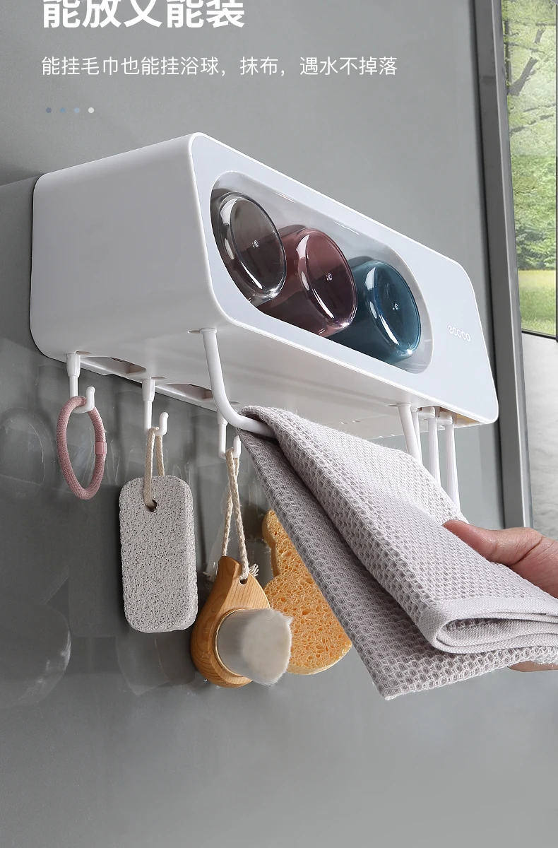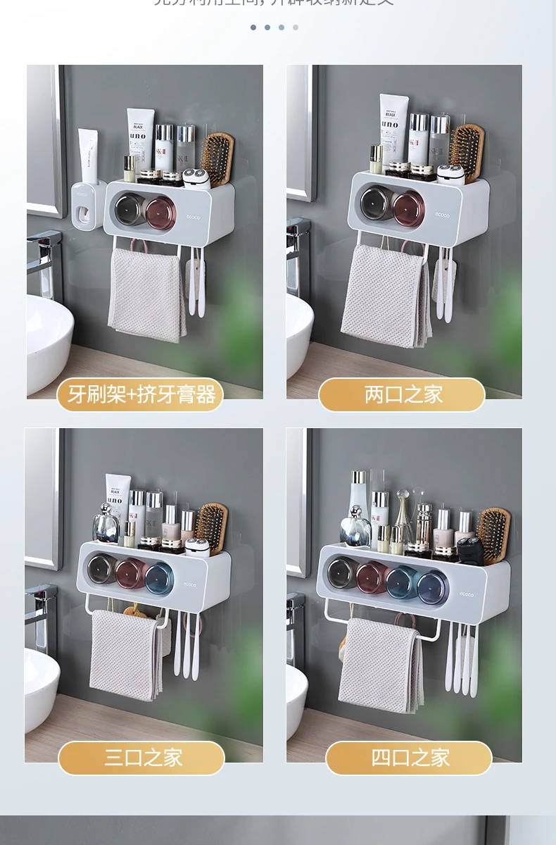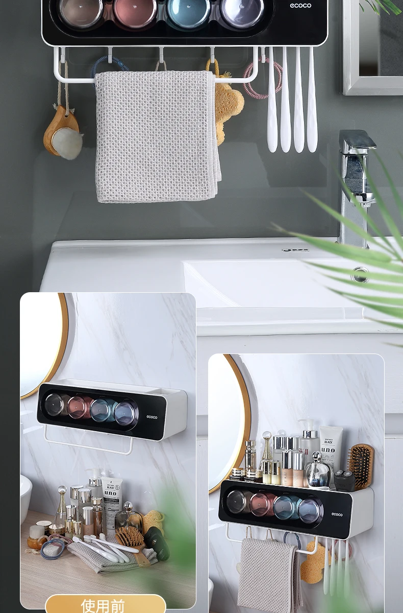 ECOCO 최신 벽 마운트 칫솔 컵 홀더 수건 바 후크와 다기능 욕실 액세서리 주최자 랙