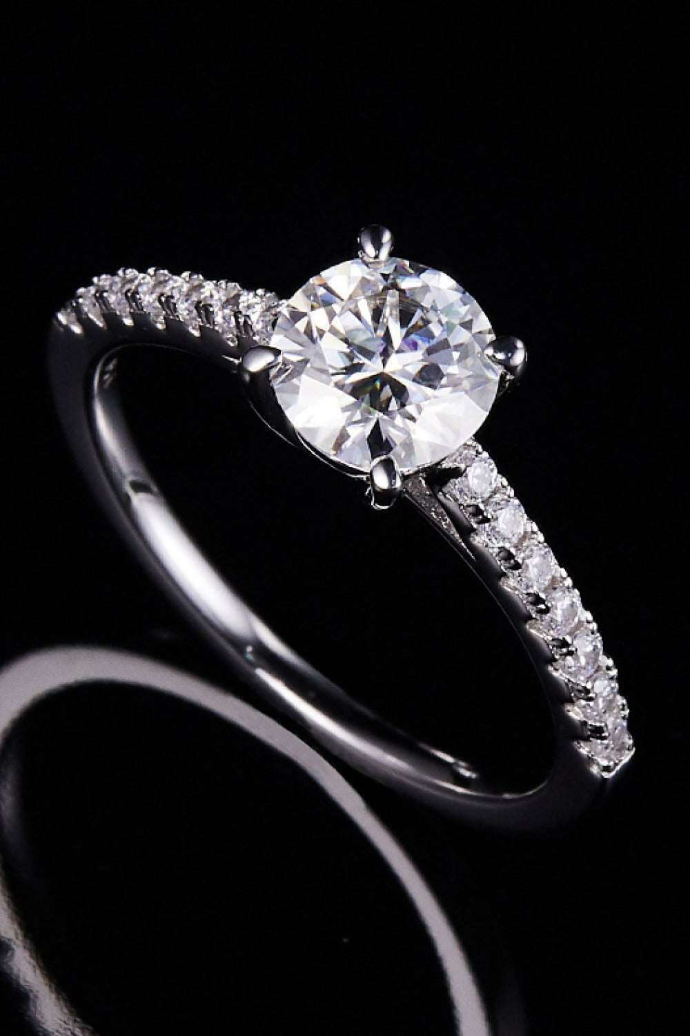 당신의 주얼리 컬렉션에 매혹적인 추가물인 이 1캐럿 모이사나이트 925 스털링 실버 사이드 스톤 링의 시대를 초월한 아름다움으로 당신의 스타일을 높여보세요.