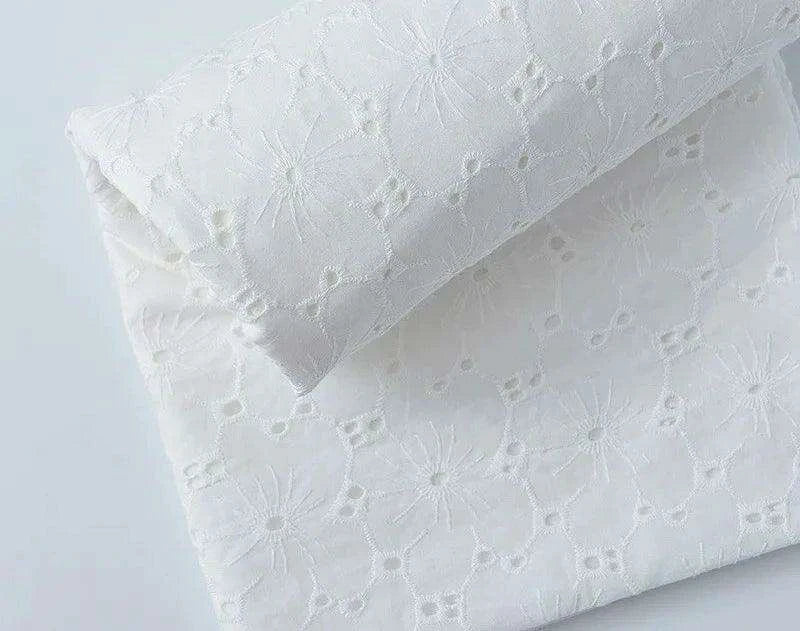 Transform your sewing projects into stunning masterpieces with our Luxurious 100% Cotton White Lace Fabric. Designed for those who value both quality and beauty, this premium lace fabric is the ideal choice for a wide array of garments, including dresses, skirts, and costumes.