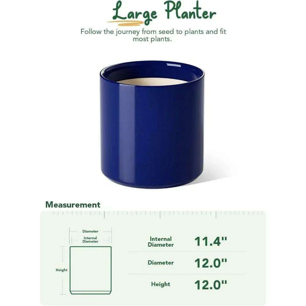 Stylish 12-Inch Blue Ceramic Flower Pot with Drainage System