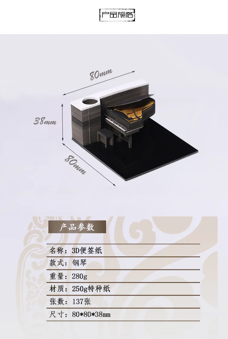 미니 3D 메모장 Omoshiroi 블록 노트 Kawaii 피아노 메모 패드 3D 스티커 메모 Diy 공예 파티 호의 신부 들러리 선물 종이 선물