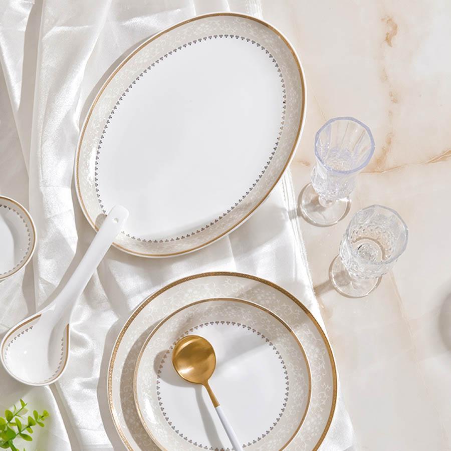 우아한 60피스 한국식 수제 뼈 도자기 다이닝 세트