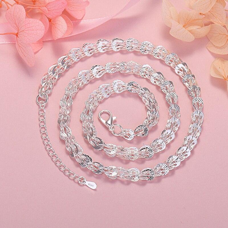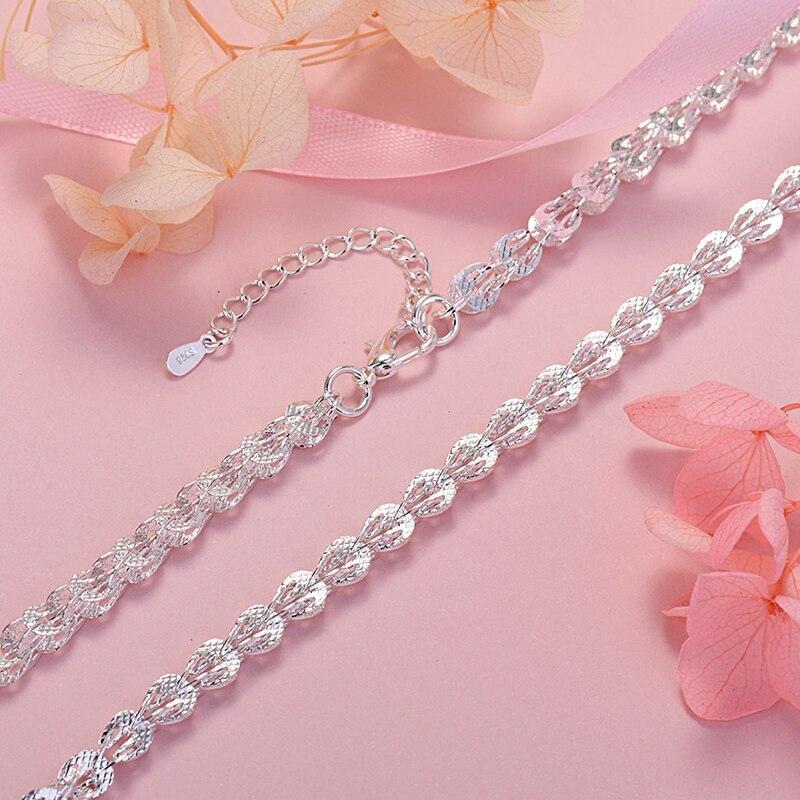 한국 패션 925 스털링 실버 새겨진 패턴 팔찌 & 목걸이 여성을위한 보석 세트 - 파티와 결혼식에 이상적