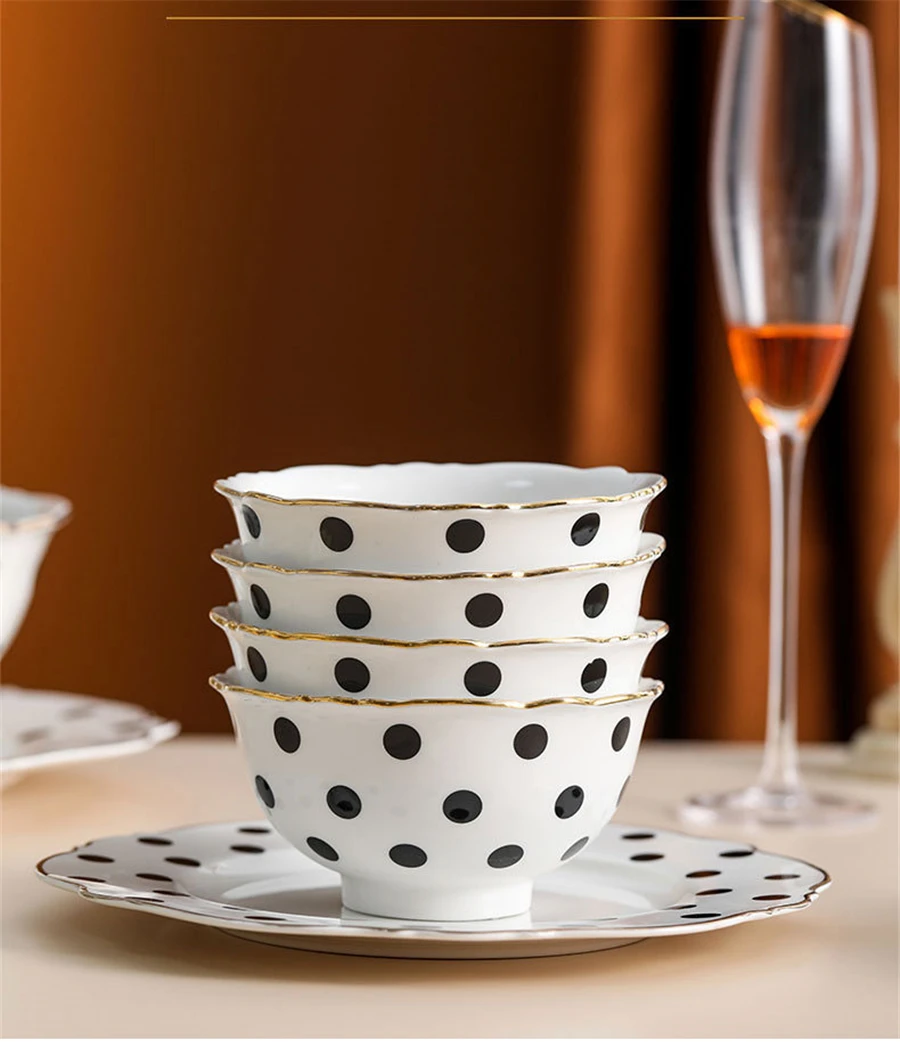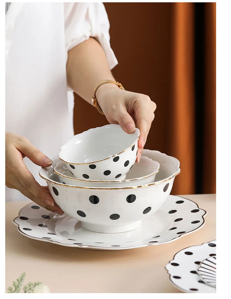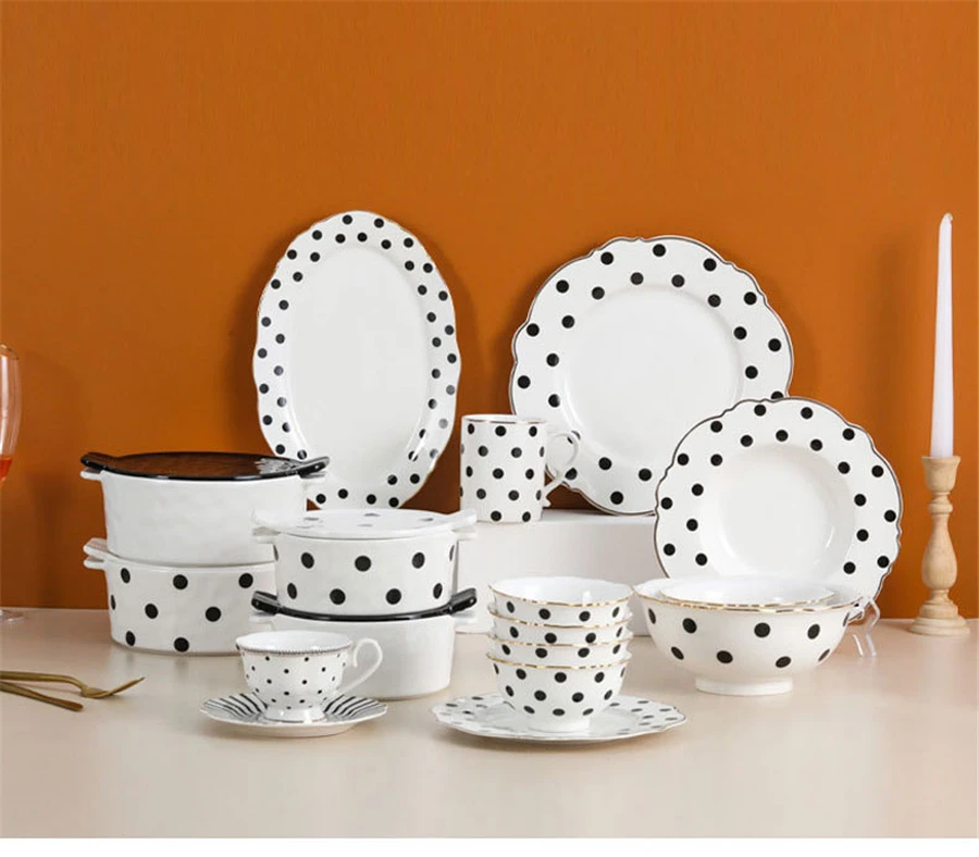 수제 세라믹 식기 세트 - 클래식 블랙 & 화이트, 가정용 주방에 적합