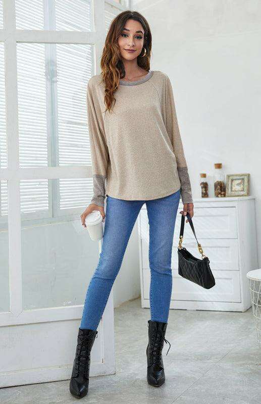 여성용 크루넥 캐주얼 루즈 인형 슬리브 티셔츠