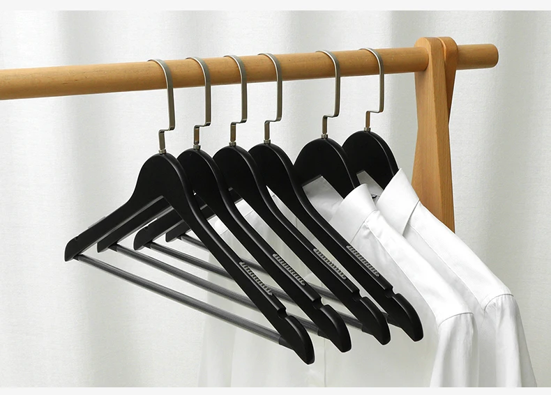 가정용 나무 옷걸이 검은 단단한 나무 후크 미끄럼 방지 옷 지원 성인 흰색 옷가게 나무 옷 걸이