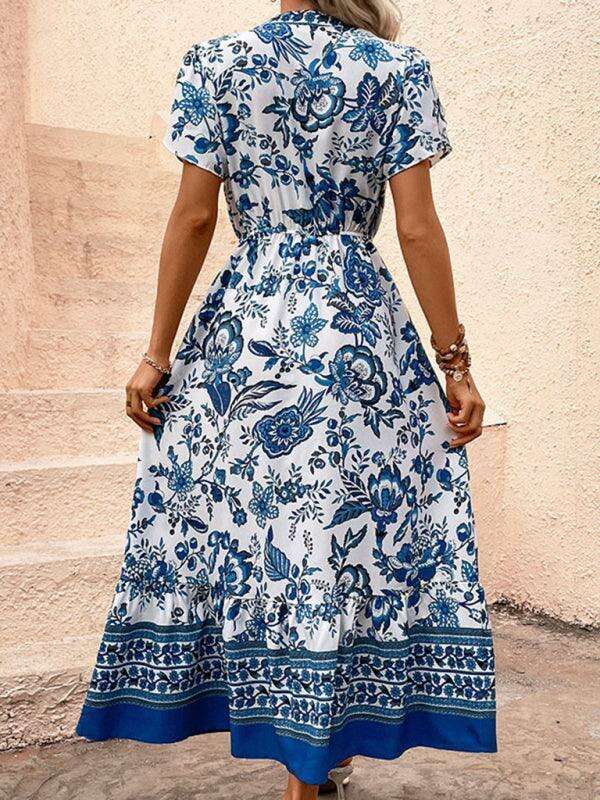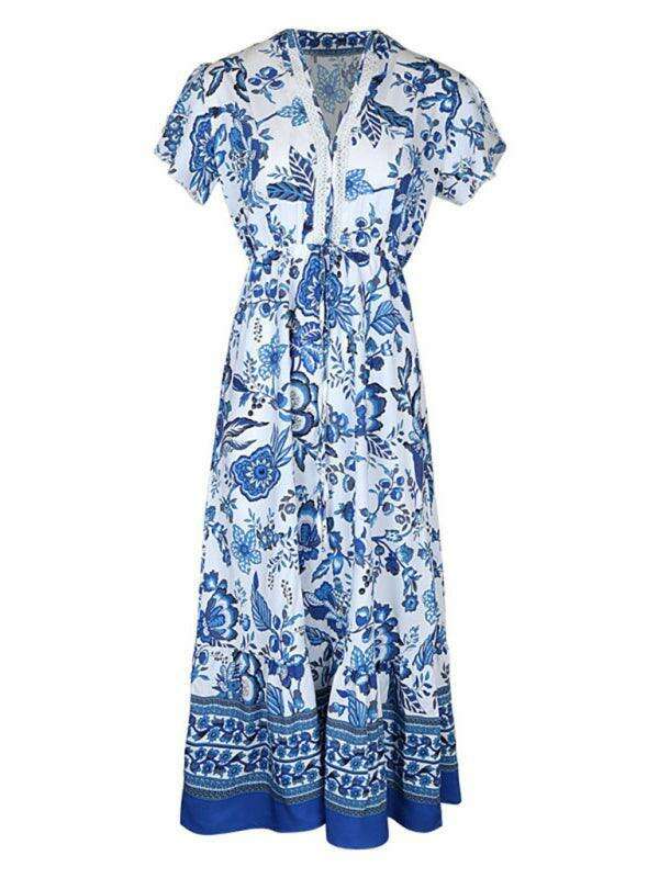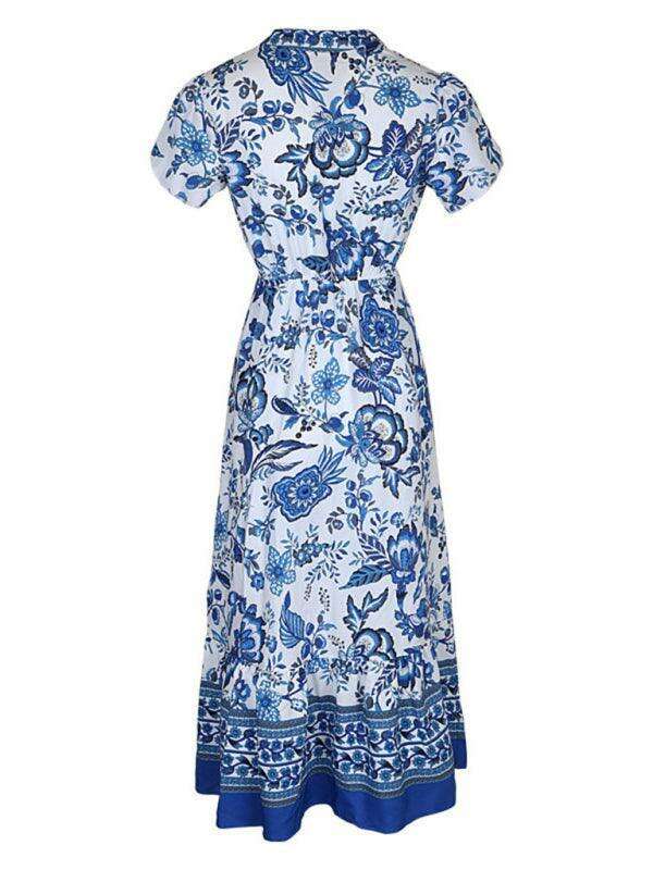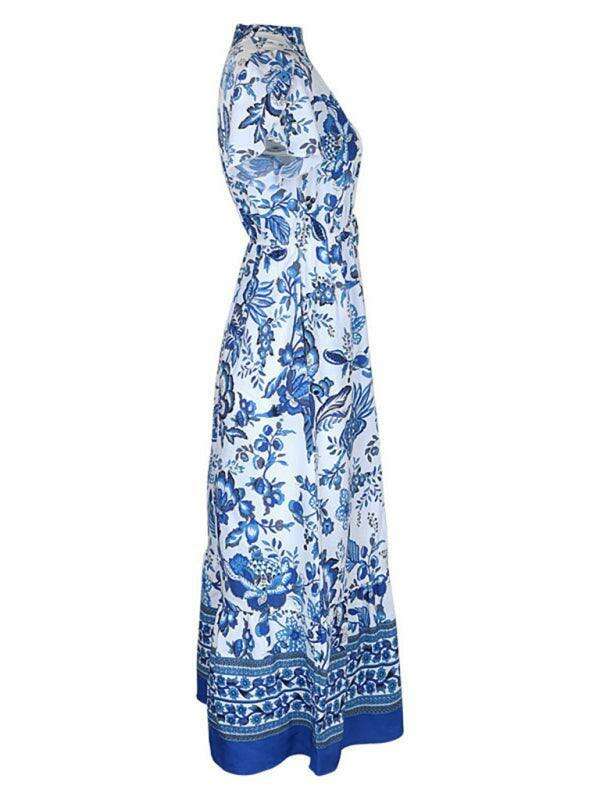 Jakoto신상 패션 블루 프린트 슬림 드레스