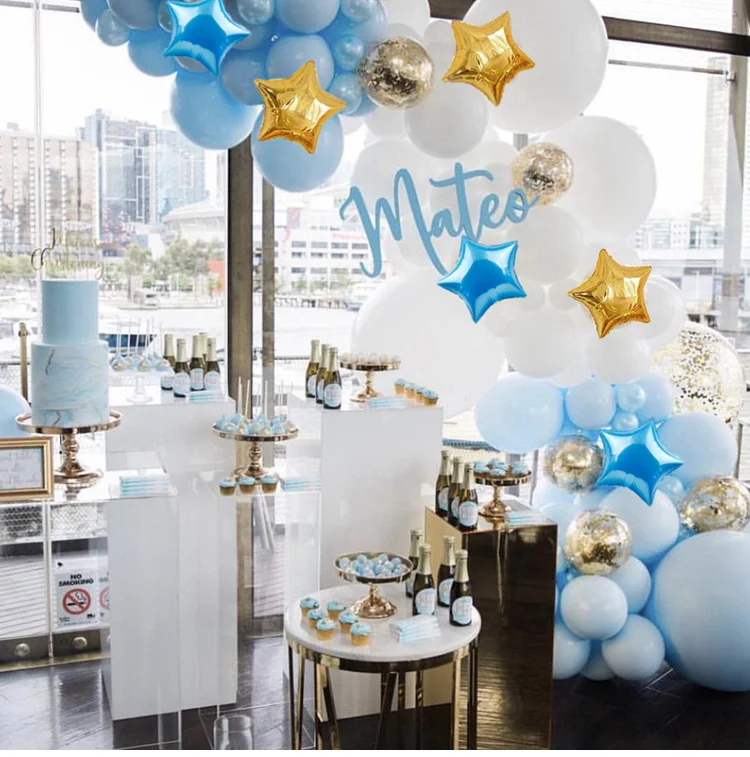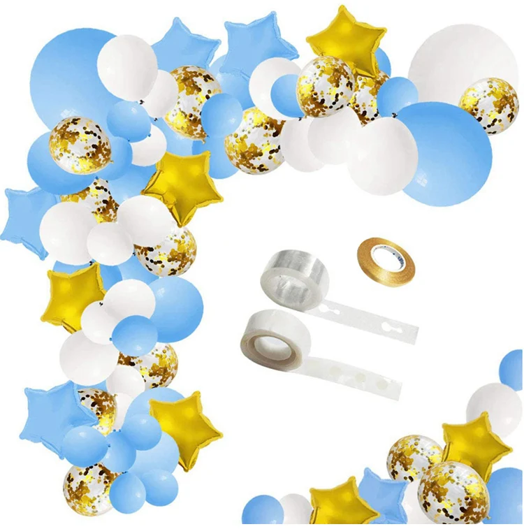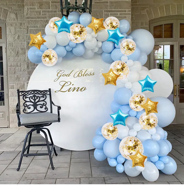 블루 마카롱 색종이 풍선 화환 생일 축하 파티 풍선 아치 키트 장식 베이비 샤워 소녀 웨딩 파티 장식