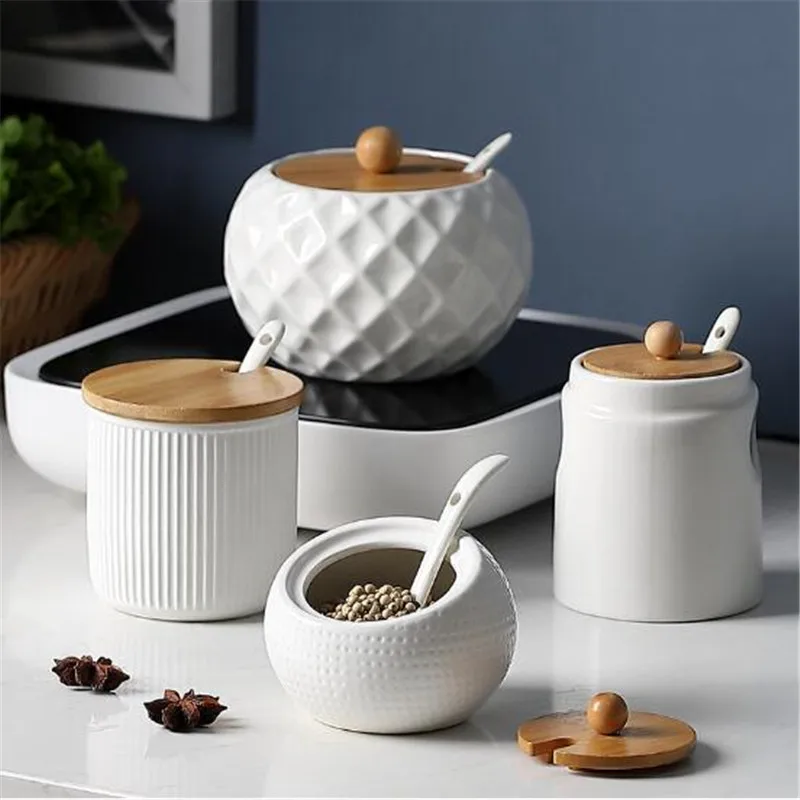 필수품인 이유: 목재 커버가 있는 세라믹 조미료 상자는 모든 주방 매니아에게 필수품입니다. 우아한 디자인과 기능적인 특징으로 인해 요리 공간에 귀중한 추가 요소가 됩니다. 지속 가능한 목재 커버는 미적 매력을 향상시킬 뿐만 아니라 향신료를 신선하게 유지하고 손이 닿는 곳에 보관할 수 있습니다. 독특한 상징적 스푼은 양념 루틴에 창의성을 더해 대화의 시작이 됩니다. 다양한 크기 옵션으로 모든 양념 요구 사항을 충족합니다.