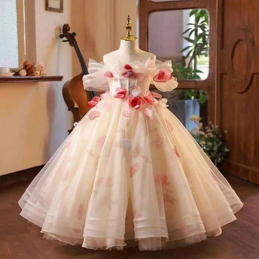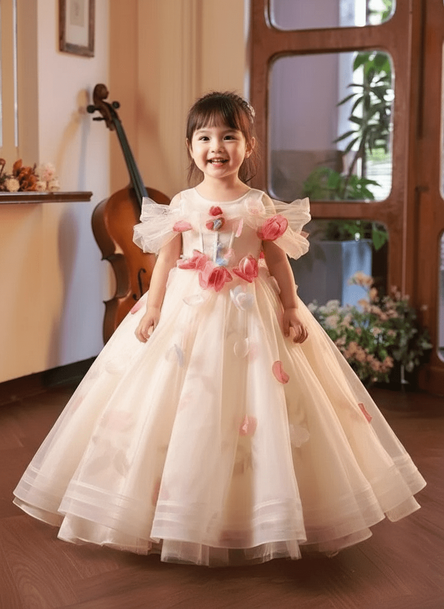 - Elegant Design: The gown is embellished with exquisite appliques that accentuate your child's inherent charm, guaranteeing that she becomes the focal point of any gathering.