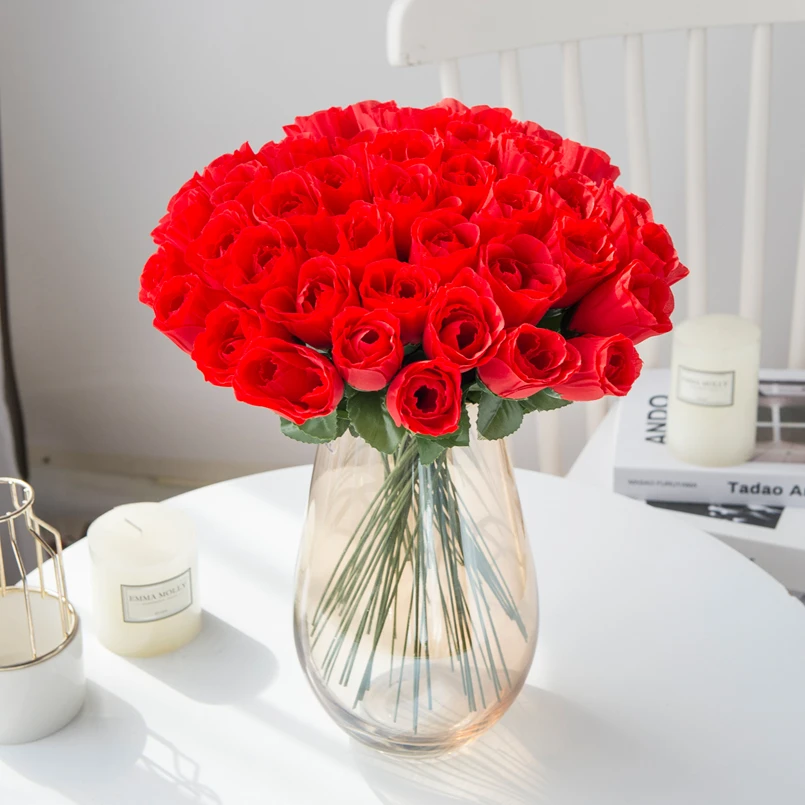 10PCS 붉은 실크 장미 꽃다발 꽃병 홈 장식 정원 결혼식 장식 화환 가짜 공장 도매 인공 꽃 저렴한