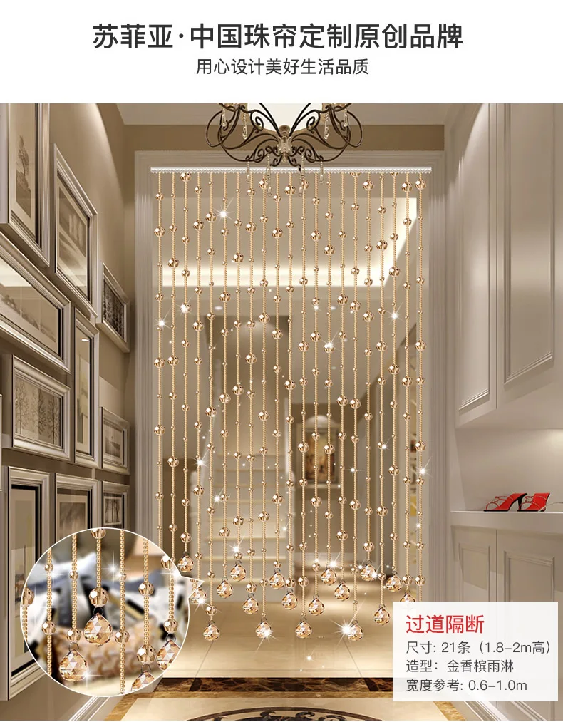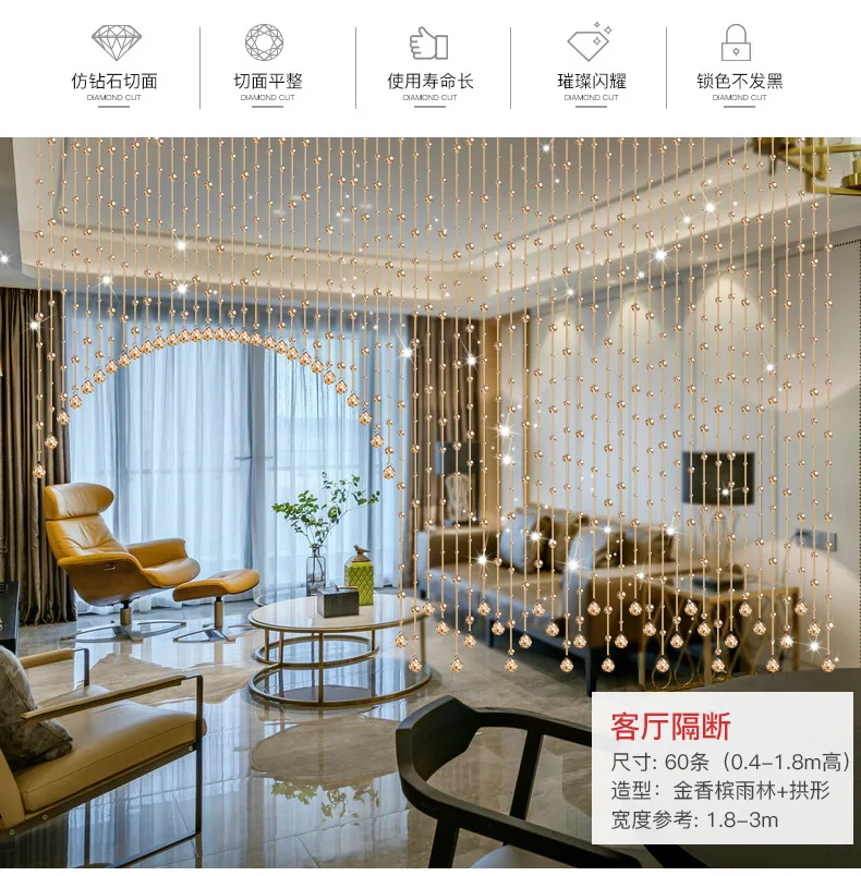 새로운 크리스탈 비드 커튼 거실 파티션 커튼 천공 무료 침실 장식 커튼 룸 장식 액세서리