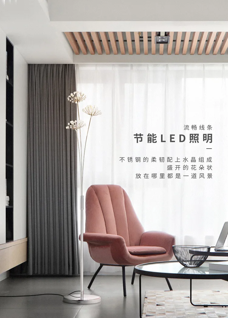 웨딩 드레스 숍 플로어 램프 연구 민들레 라이트 명나라 현대 간단한 led 플로어 램프 거실 침실 크리스탈 램프