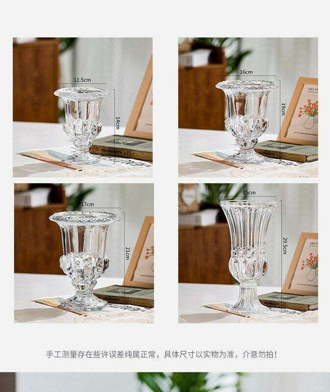 크리 에이 티브 라이트 럭셔리 랜턴 키가 큰 유리 꽃병 투명 크리스탈 꽃꽂이 로마 꽃병 홈스테이 장식품