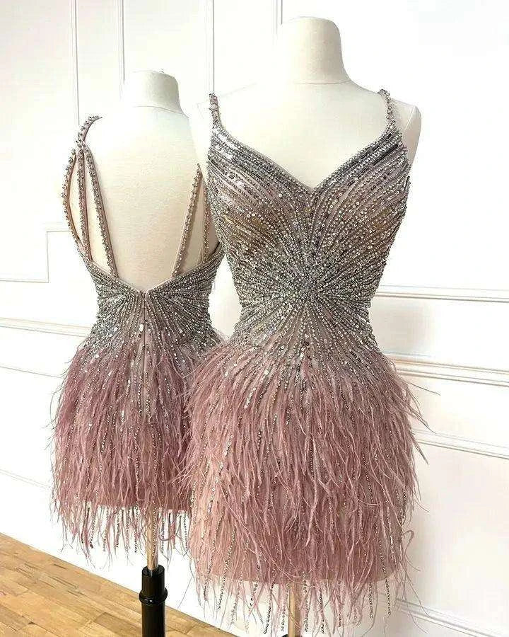 Glamorous Backless Feathered Mini Dress with Custom Fit for Cocktail Events Step into elegance and make a stunning entrance at... Read more Read more