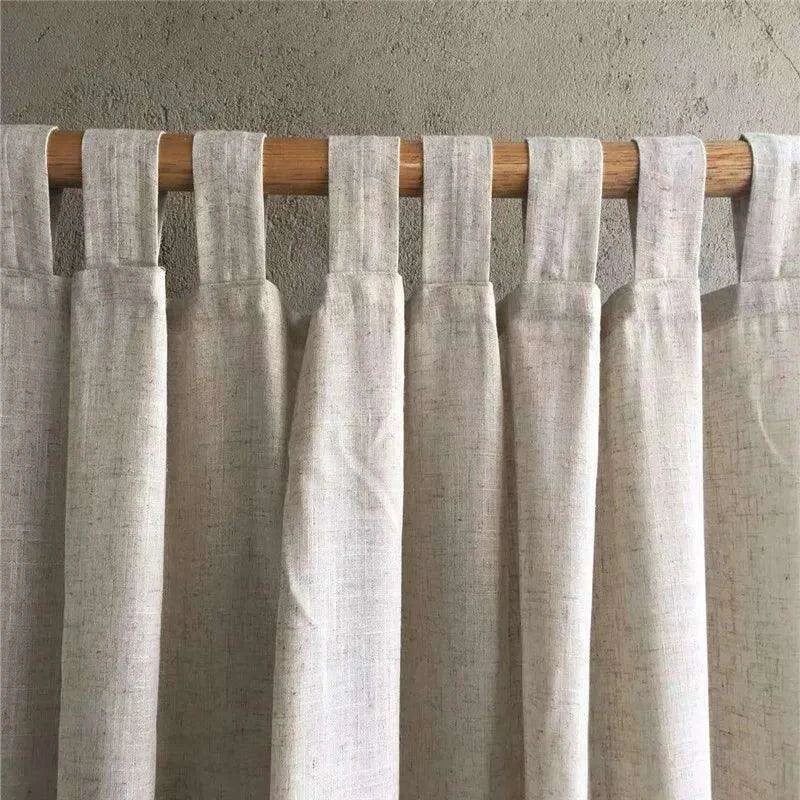 Chic Beige Cotton Linen Semi-Blackout Drapes for Home & Cafe, Customizable Tap Top Curtains