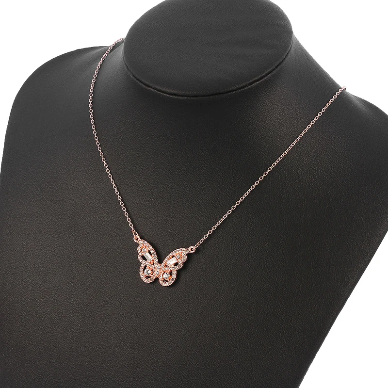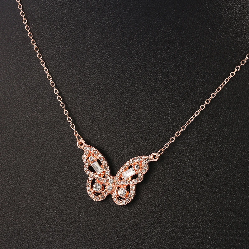 뜨거운 판매 새로운 도착 지르코니아 나비 목걸이 매력 블링 CZ 로즈 골드 나비 실버 컬러 쥬얼리 펜던트 Bijoux 여성을위한