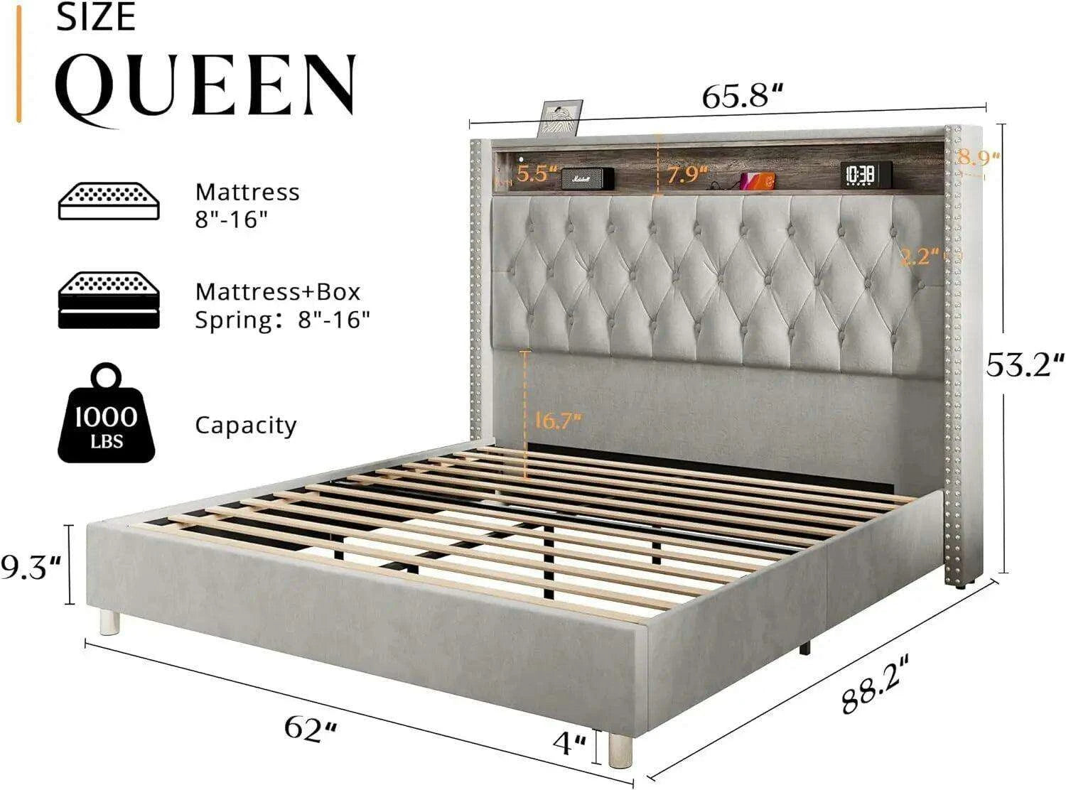 - Luxurious Design: Elevate your space with an extra tall 53.2" button tufted wingback headboard, elegantly upholstered in plush velvet.