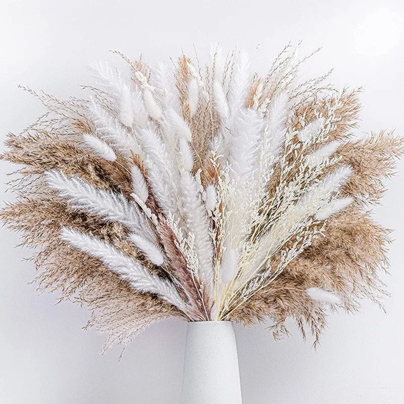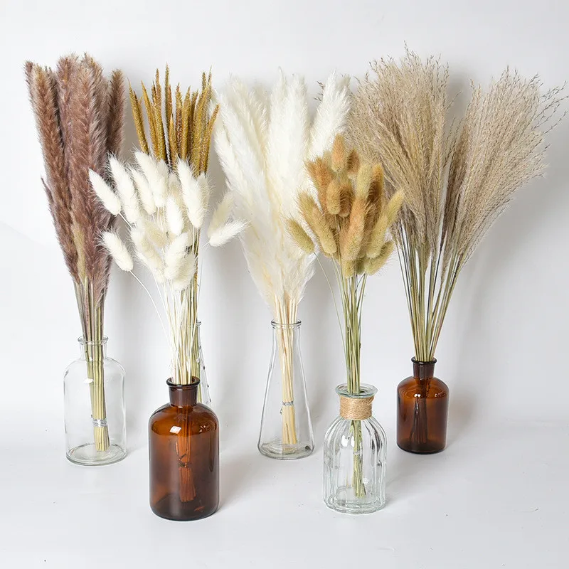 인공적으로 자란 작은 팜파스 잔디, 진짜 자연 말린 꽃, 토끼, 갈대 꽃다발 대량 판매, 가정용 무료 배송