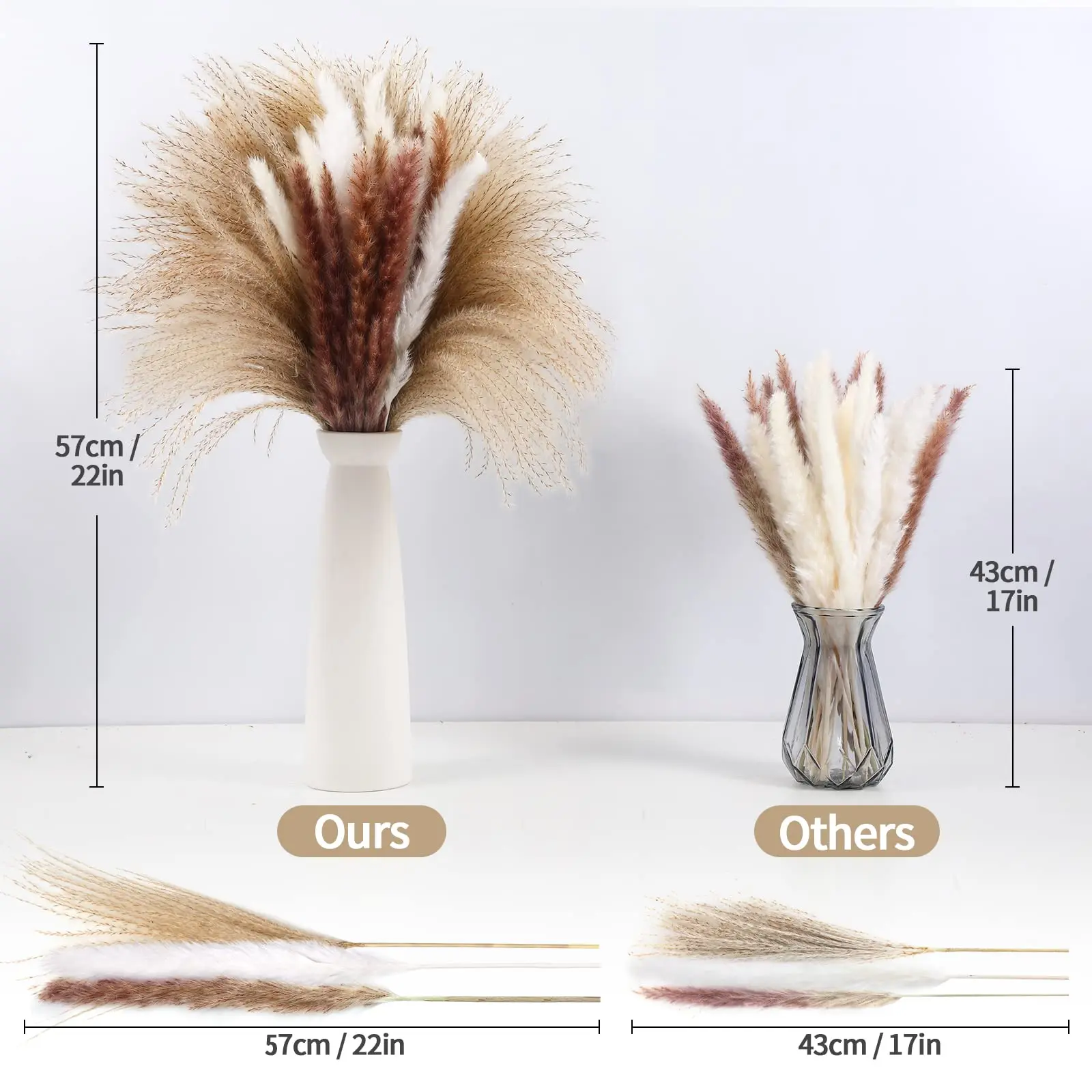 자연 솜털 말린 팜파스 잔디 장식 리드 Pompas 잔디 마른 꽃 결혼식 꽃꽂이 Boho 홈 스타일 장식 꽃다발