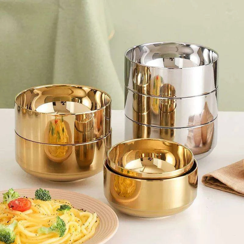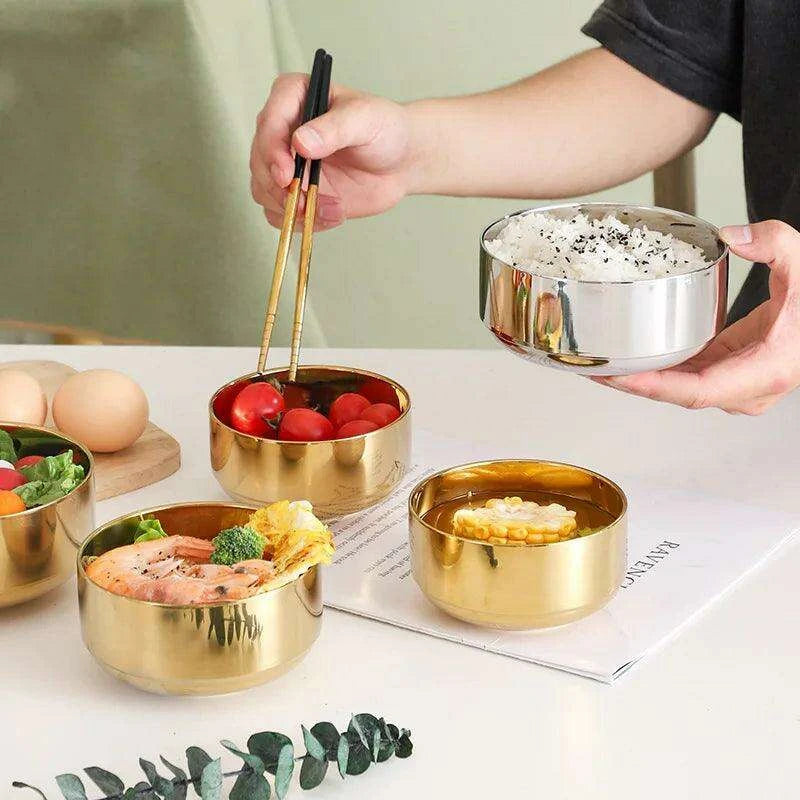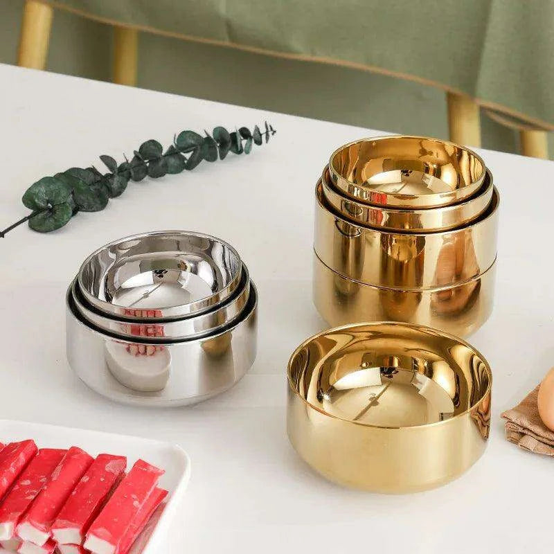 Elegant Dual-Layer Stainless Steel Bowls - Essential for Modern Korean Dining