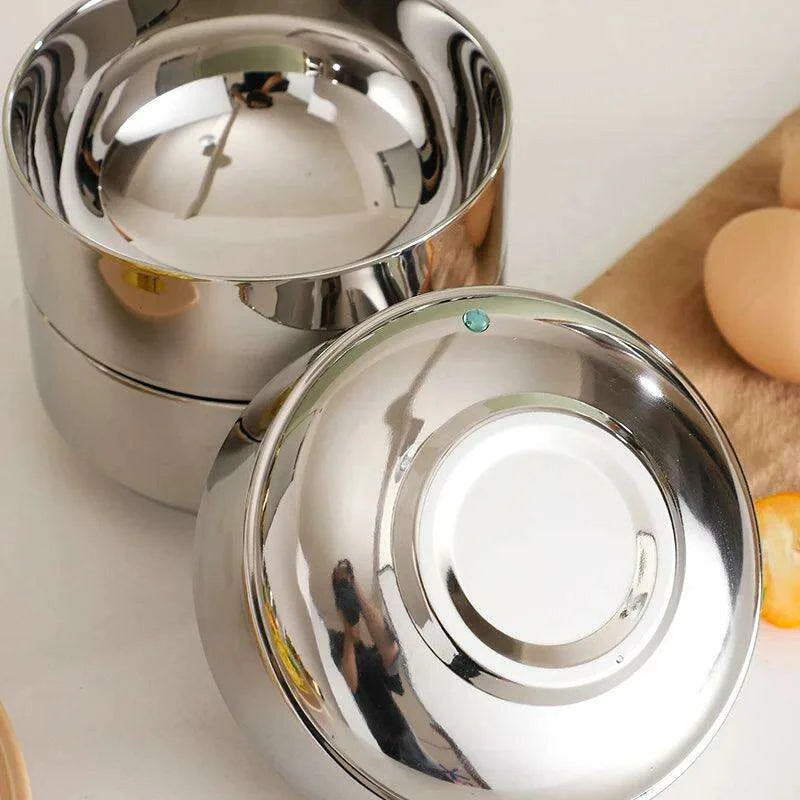 Stylish Stainless Steel Dual Layer Bowl Set - Modern Korean Dining Essential