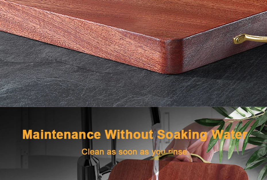 황금색 손잡이가 있는 흑단 나무 도마 - 프리미엄 품질의 주방 도마