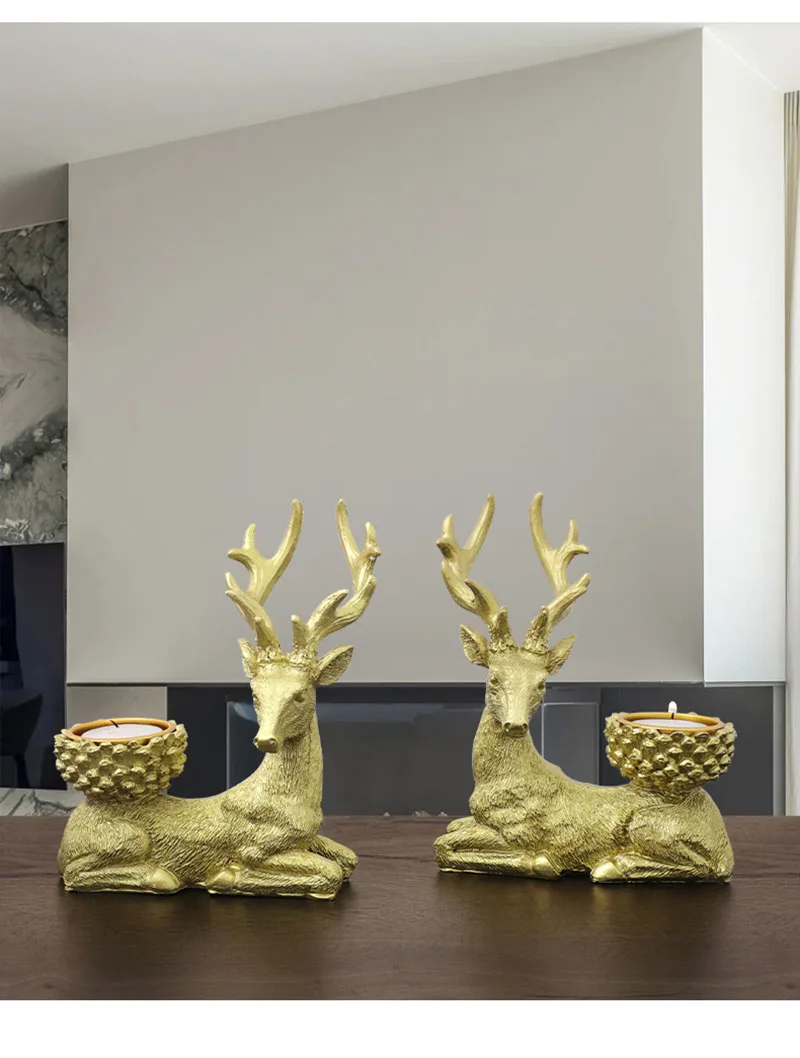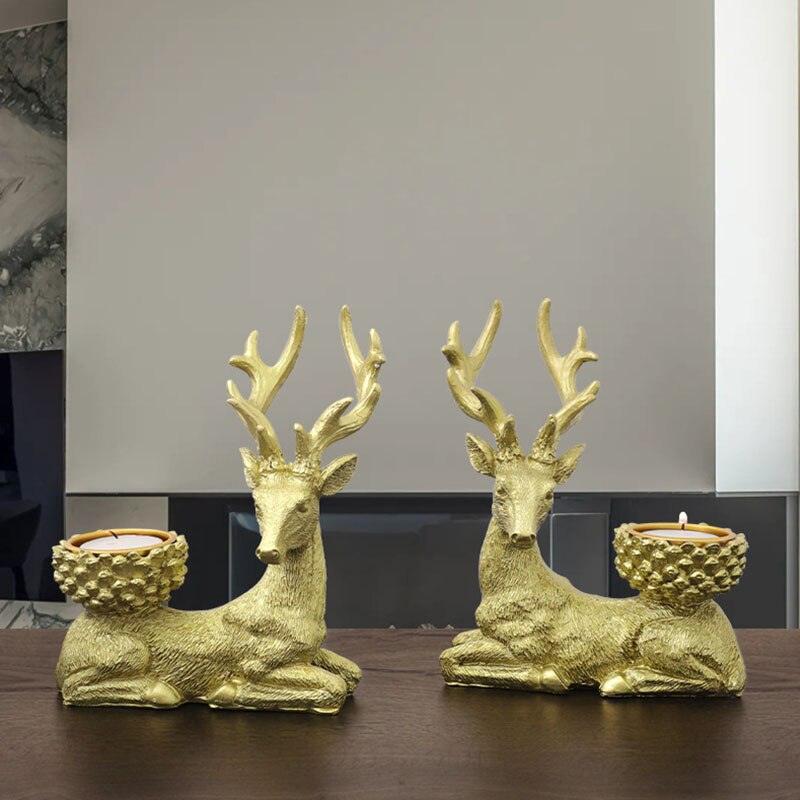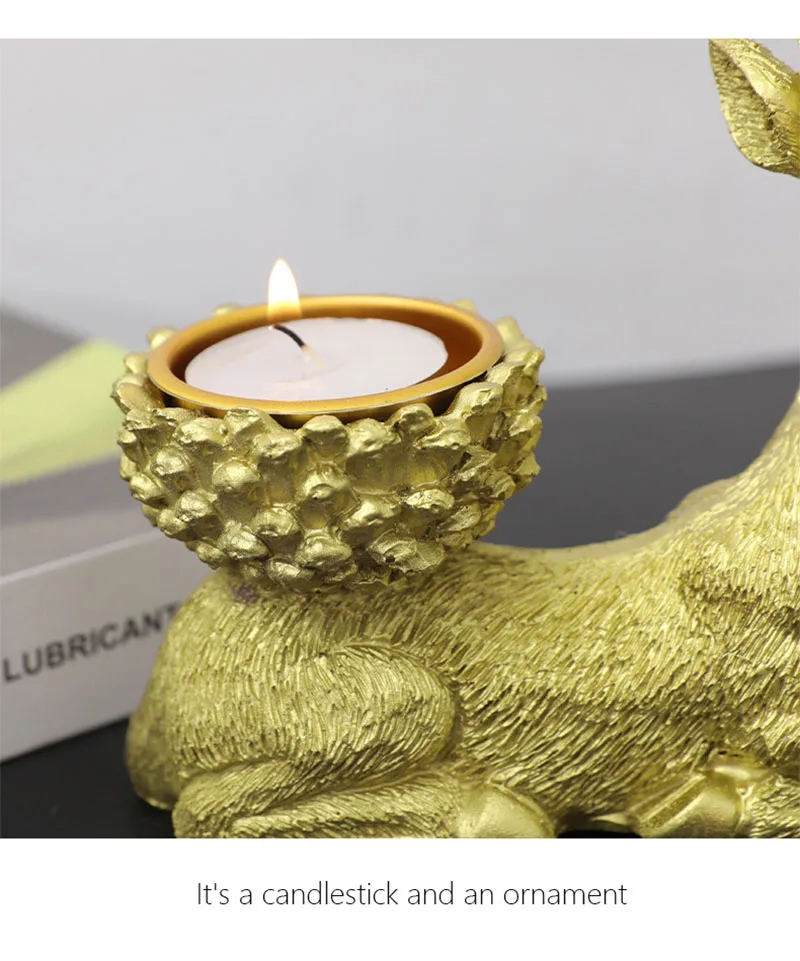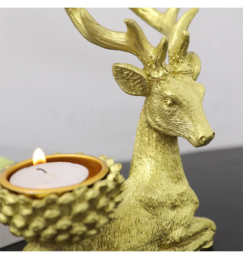 수지 엘크 촛대 인형 | 가정 장식을 위한 황금 사슴 캔들 홀더